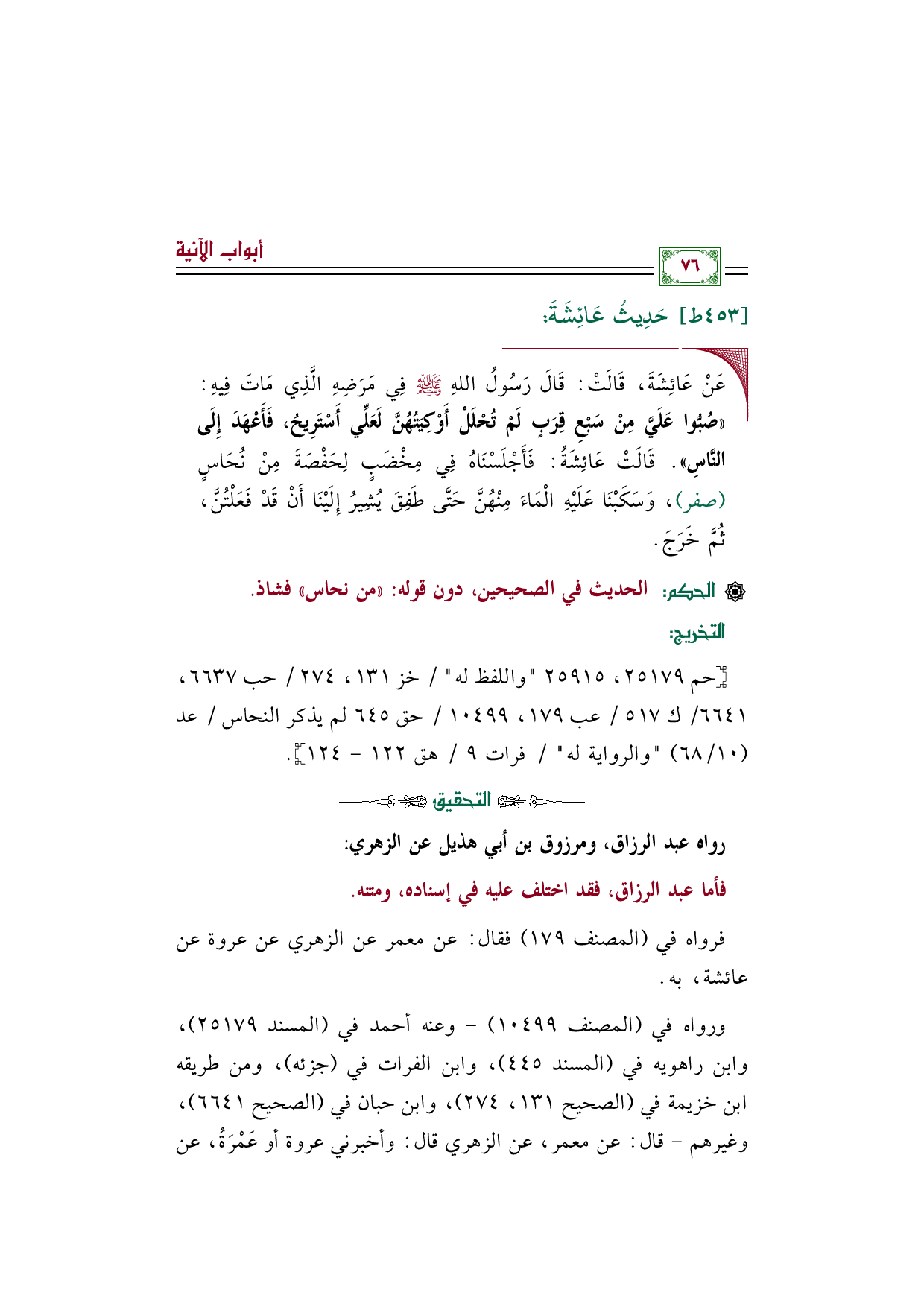 [حم ٢٥١٧٩، ٢٥٩١٥ "واللفظ له" / خز ١٣١، ٢٧٤ / حب ٦٦٣٧، ٦٦٤١/ ك ٥١٧ / عب ١٧٩، ١٠٤٩٩ / حق ٦٤٥ لم يذكر النحاس / عد (١٠/ ٦٨) "والرواية له" / فرات ٩ / هق ١٢٢ - ١٢٤].
