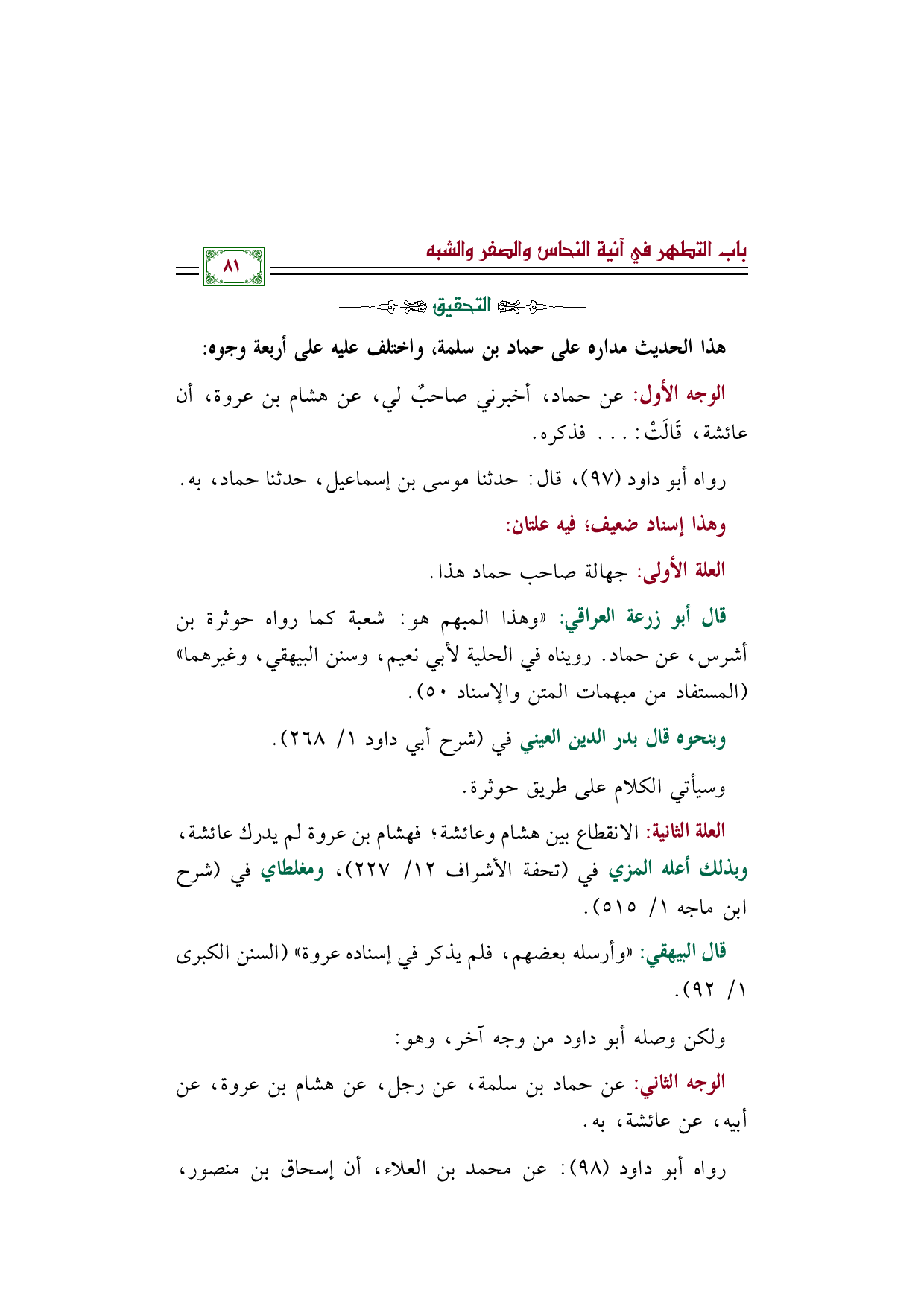 رواه أبو داود (٩٧)، قال: حدثنا موسى بن إسماعيل، حدثنا حماد، به.