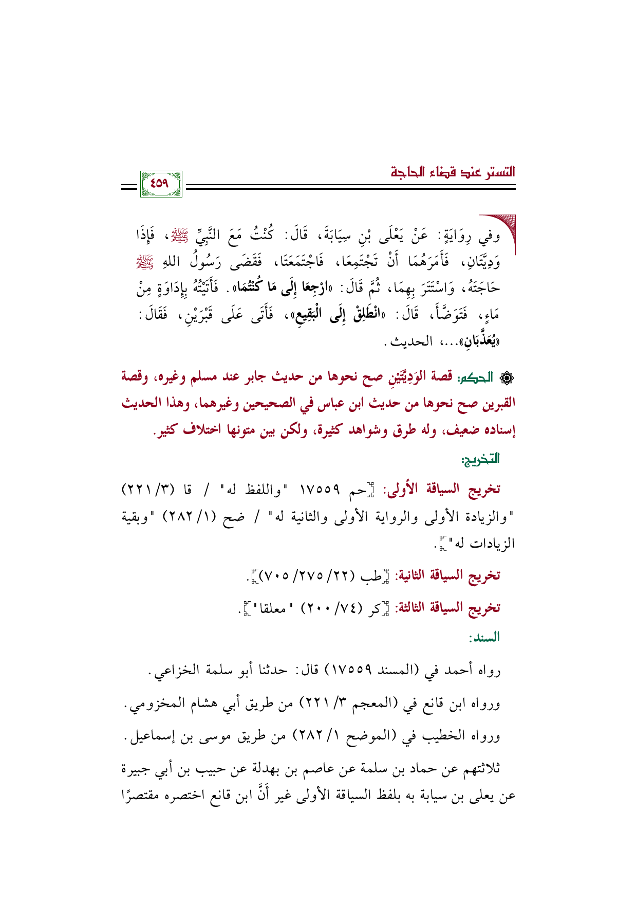 تخريج السياقة الأولى: [حم ١٧٥٥٩ واللفظ له / قا (٣/ ٢٢١) والزيادة الأولى والرواية الأولى والثانية له / ضح (١/ ٢٨٢) وبقية الزيادات له]