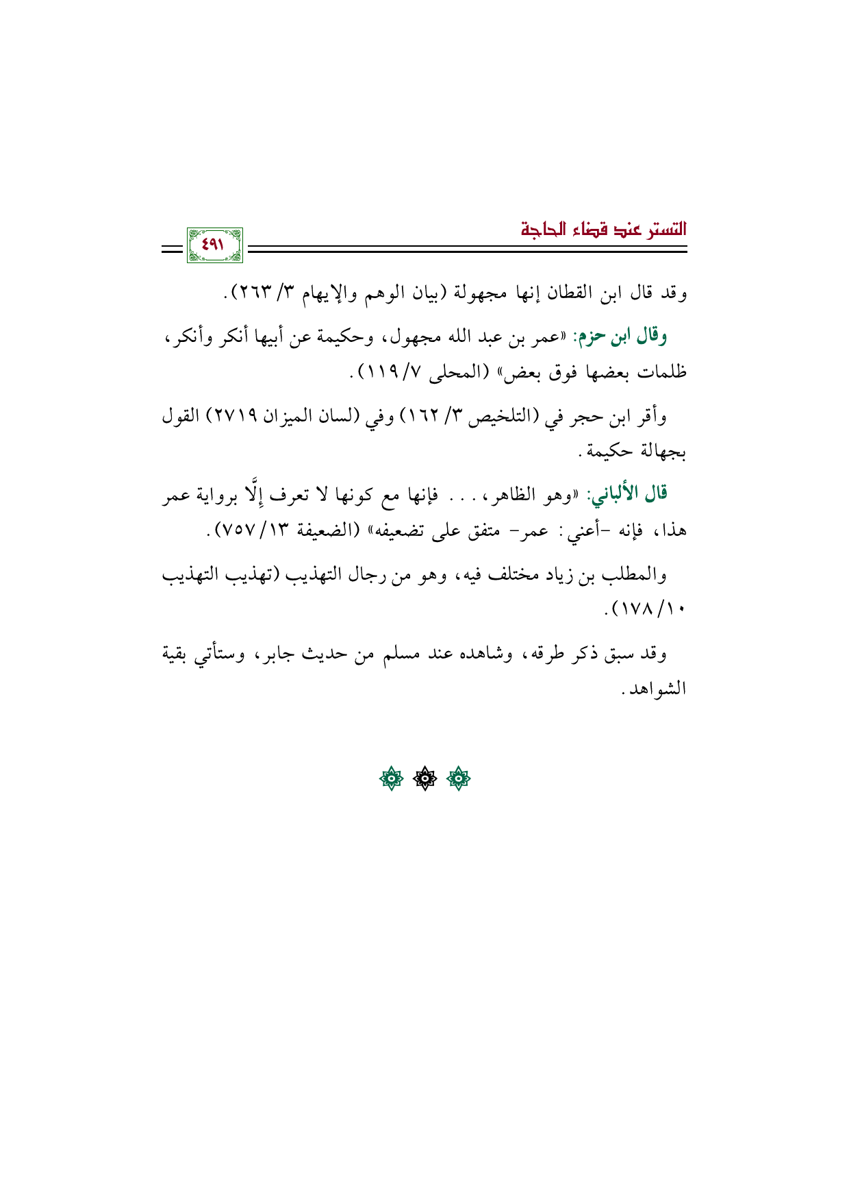 وأقر ابن حجر في (التلخيص ٣/ ١٦٢) وفي (لسان الميزان ٢٧١٩) القول بجهالة حكيمة.