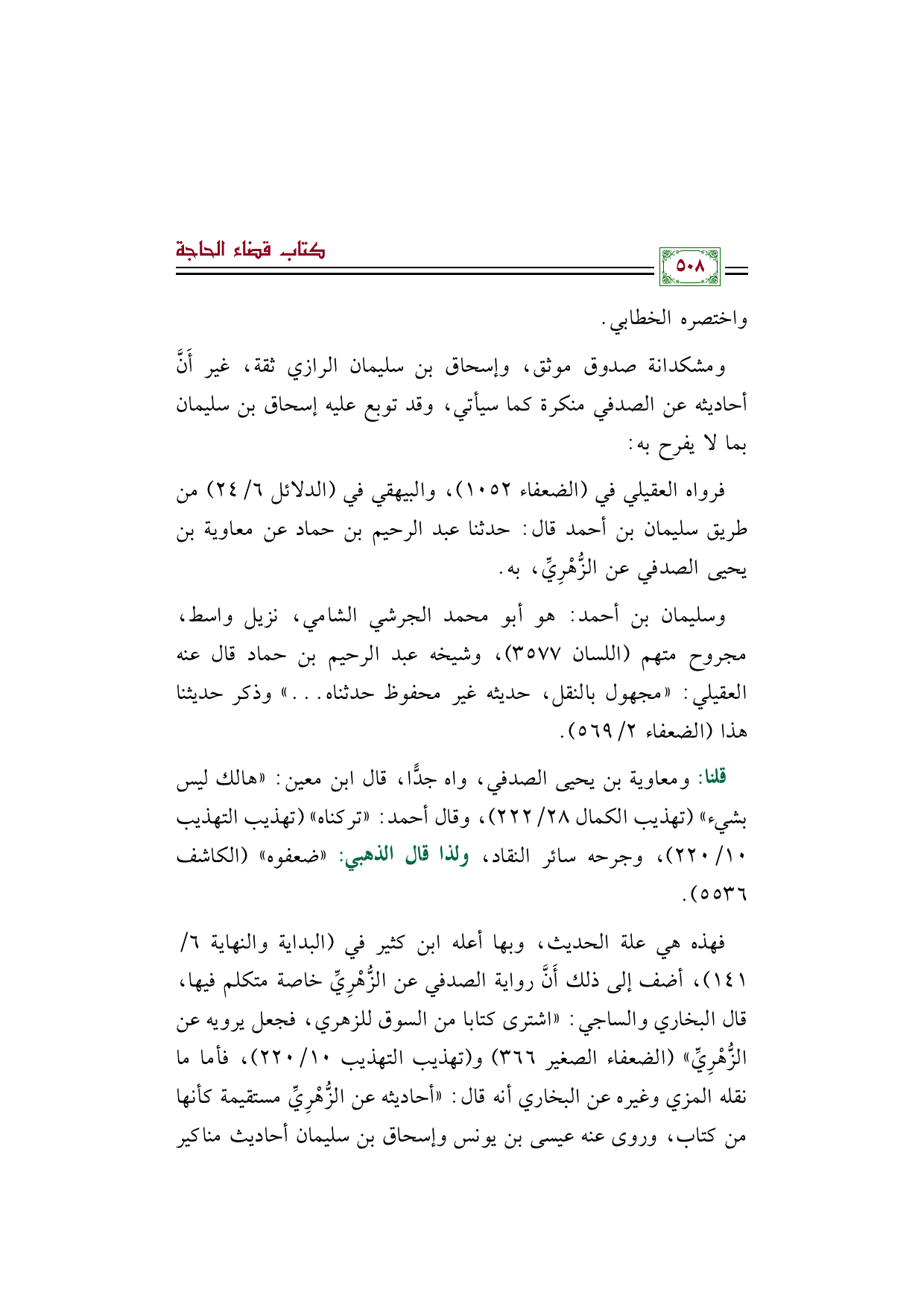 فهذه هي علة الحديث، وبها أعله ابن كثير في (البداية والنهاية ٦/ ١٤١)، أضف إلى ذلك أَنَّ رواية الصدفي عن الزُّهْرِيِّ خاصة متكلم فيها، قال البخاري والساجي: "اشترى كتابا من السوق للزهري، فجعل يرويه عن الزُّهْرِيِّ" (الضعفاء الصغير ٣٦٦) و (تهذيب التهذيب ١٠/ ٢٢٠)، فأما ما نقله المزي وغيره عن البخاري أنه قال: "أحاديثه عن الزُّهْرِيِّ مستقيمة كأنها من كتاب، وروى عنه عيسى بن يونس وإسحاق بن سليمان أحاديث مناكير