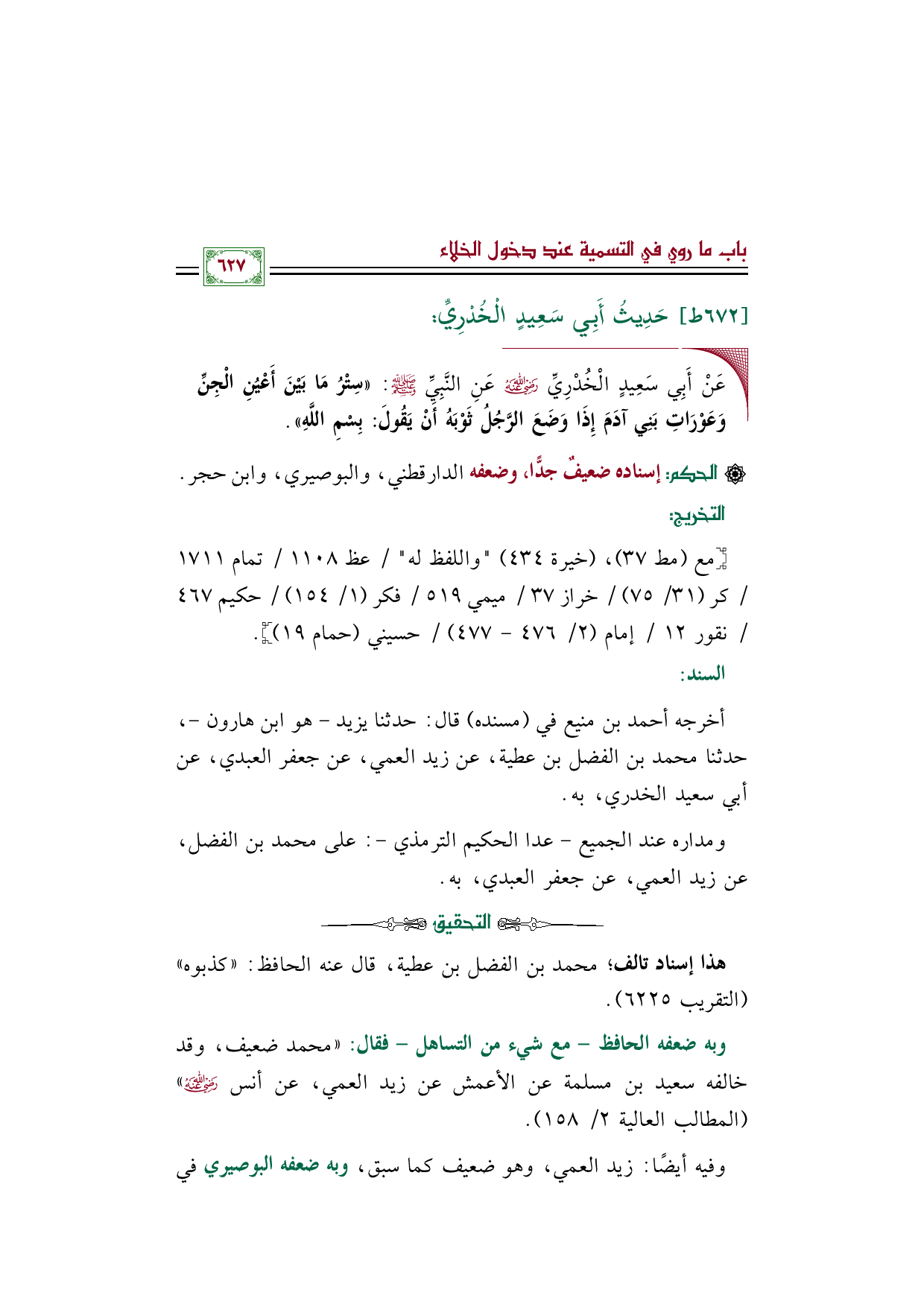 أخرجه أحمد بن منيع في "مسنده" قال: حدثنا يزيد - هو ابن هارون -، حدثنا محمد بن الفضل بن عطية، عن زيد العمي، عن جعفر العبدي، عن أبي سعيد الخدري، به.