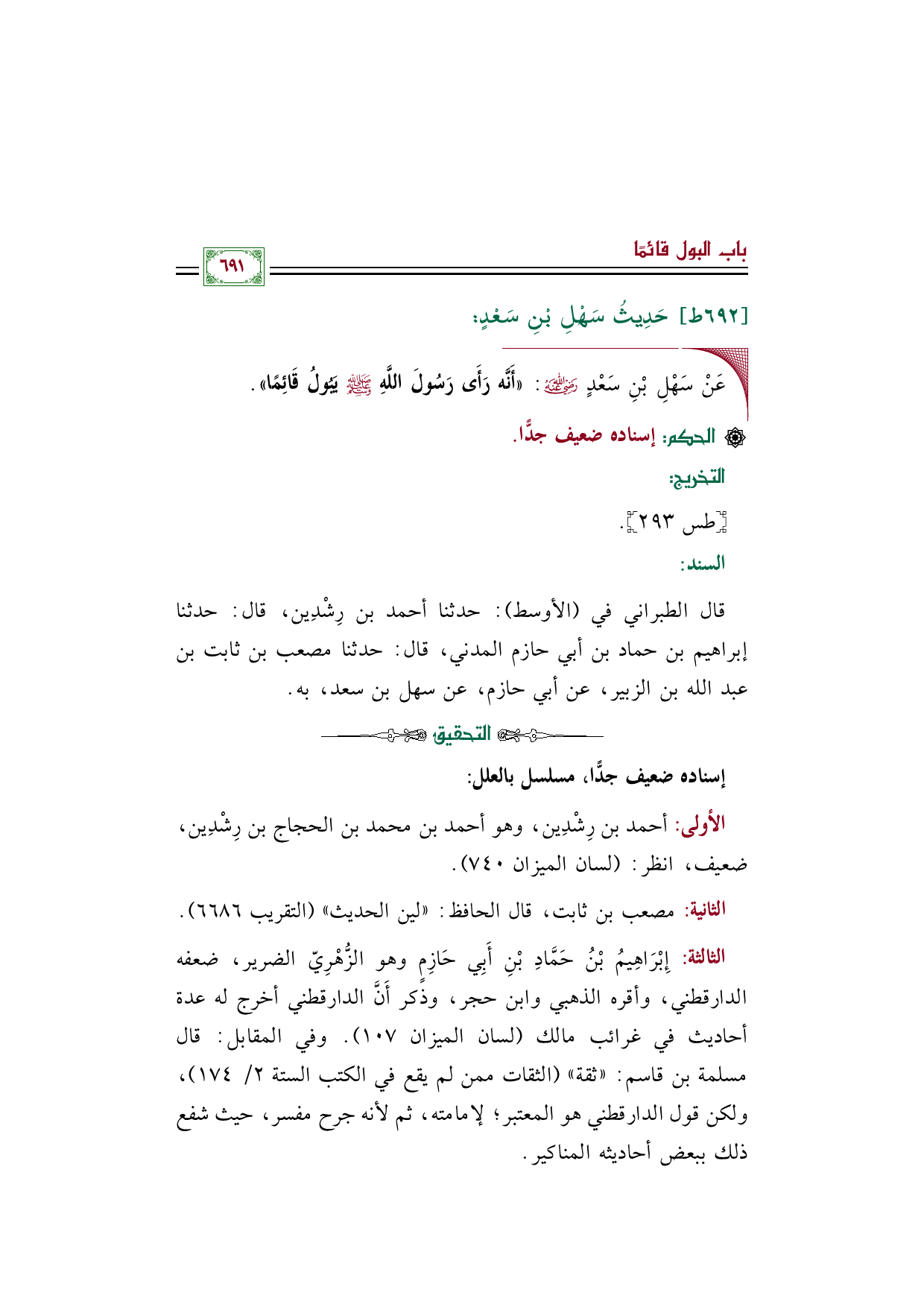 ◼ عَنْ سَهْلِ بْنِ سَعْدٍ رضي الله عنه: «أَنَّه رَأَى رَسُولَ اللَّهِ صلى الله عليه وسلم يَبُولُ قَائِمًا».