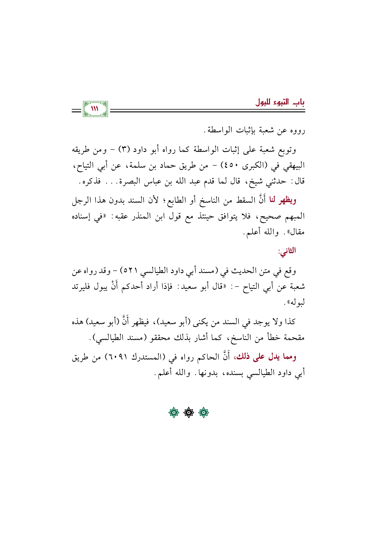 وقع في متن الحديث في (مسند أبي داود الطيالسي ٥٢١) - وقد رواه عن شعبة عن أبي التياح -: "قال أبو سعيد: فإذا أراد أحدكم أَنْ يبول فليرتد لبوله".