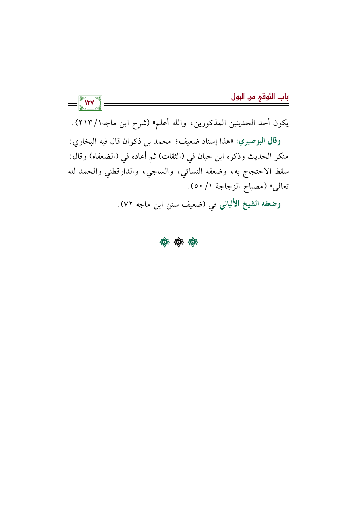 يكون أحد الحديثين المذكورين، والله أعلم" (شرح ابن ماجه ١/ ٢١٣).