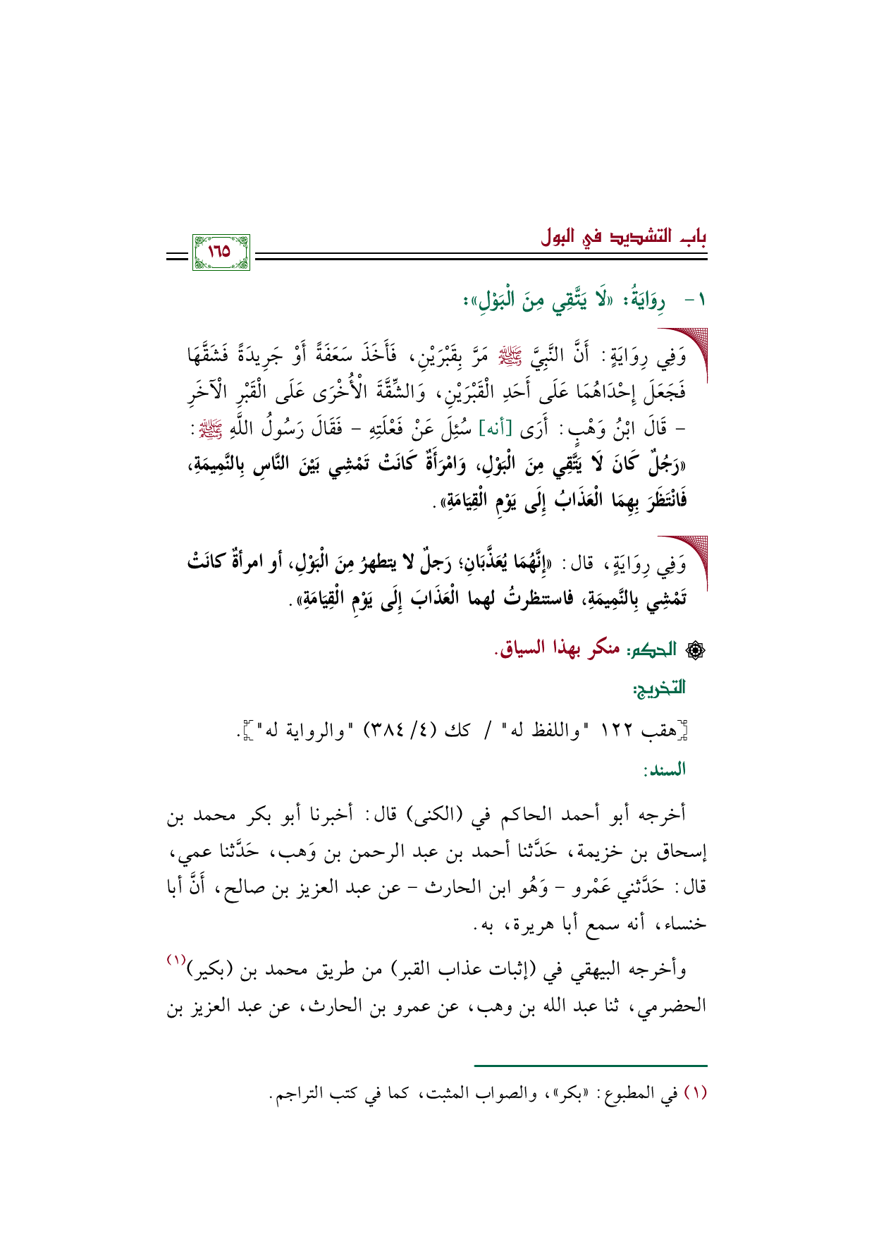 وأخرجه البيهقي في (إثبات عذاب القبر) من طريق محمد بن (بكير) (¬١) الحضرمي، ثنا عبد الله بن وهب، عن عمرو بن الحارث، عن عبد العزيز بن