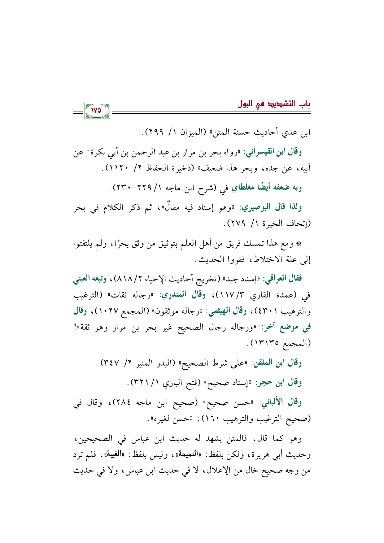 فقال العراقي: "إسناد جيد" (تخريج أحاديث الإحياء ٢/ ٨١٨)، وتبعه العيني في (عمدة القاري ٣/ ١١٧)، وقال المنذري: "رجاله ثقات" (الترغيب والترهيب ٤٣٠١)، وقال الهيثمي: "رجاله موثقون" (المجمع ١٠٢٧)، وقال في موضع آخر: "ورجاله رجال الصحيح غير بحر بن مرار وهو ثقة"! (المجمع ١٣١٣٥).
