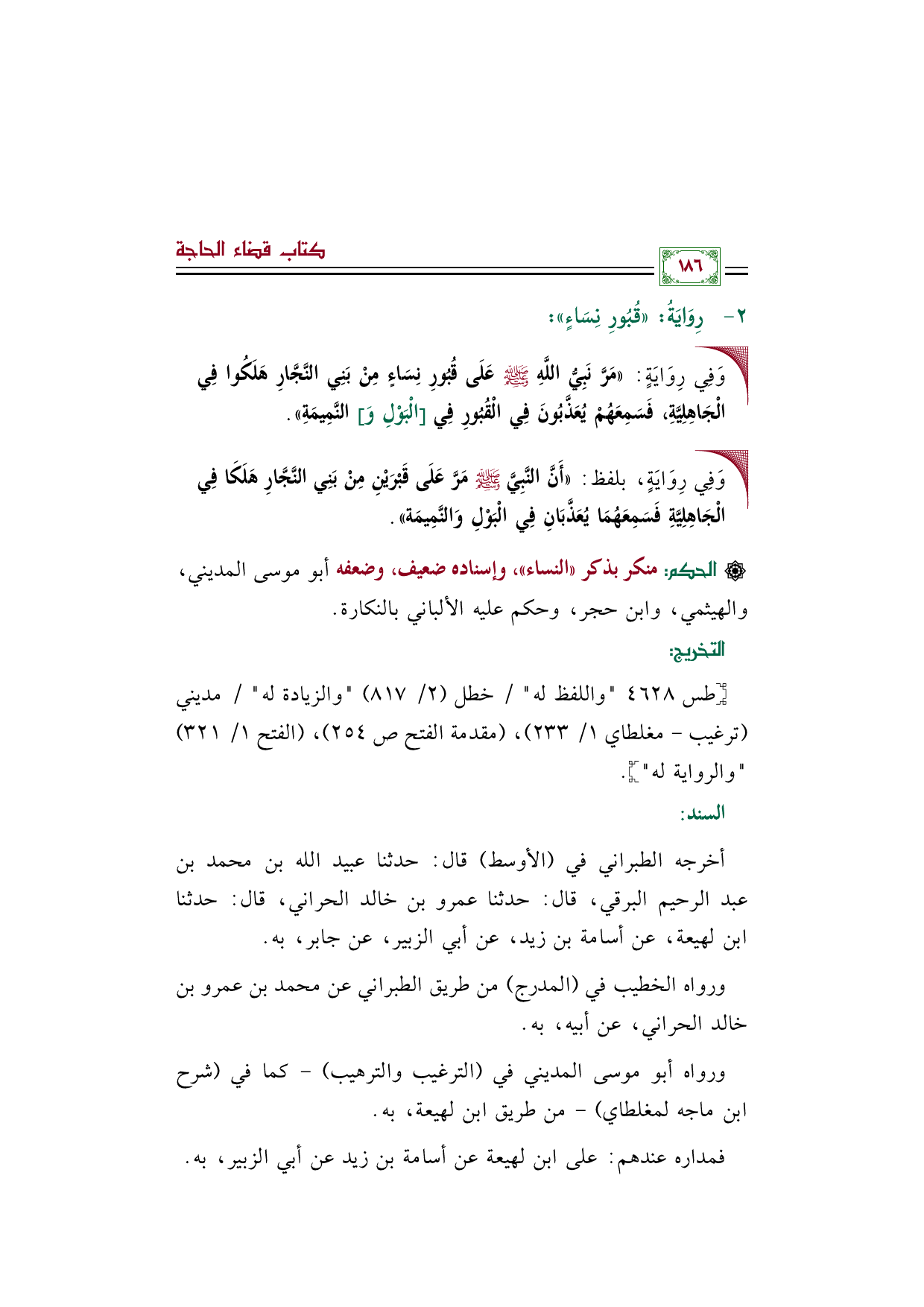 أخرجه الطبراني في (الأوسط) قال: حدثنا عبيد الله بن محمد بن عبد الرحيم البرقي، قال: حدثنا عمرو بن خالد الحراني، قال: حدثنا ابن لهيعة، عن أسامة بن زيد، عن أبي الزبير، عن جابر، به.