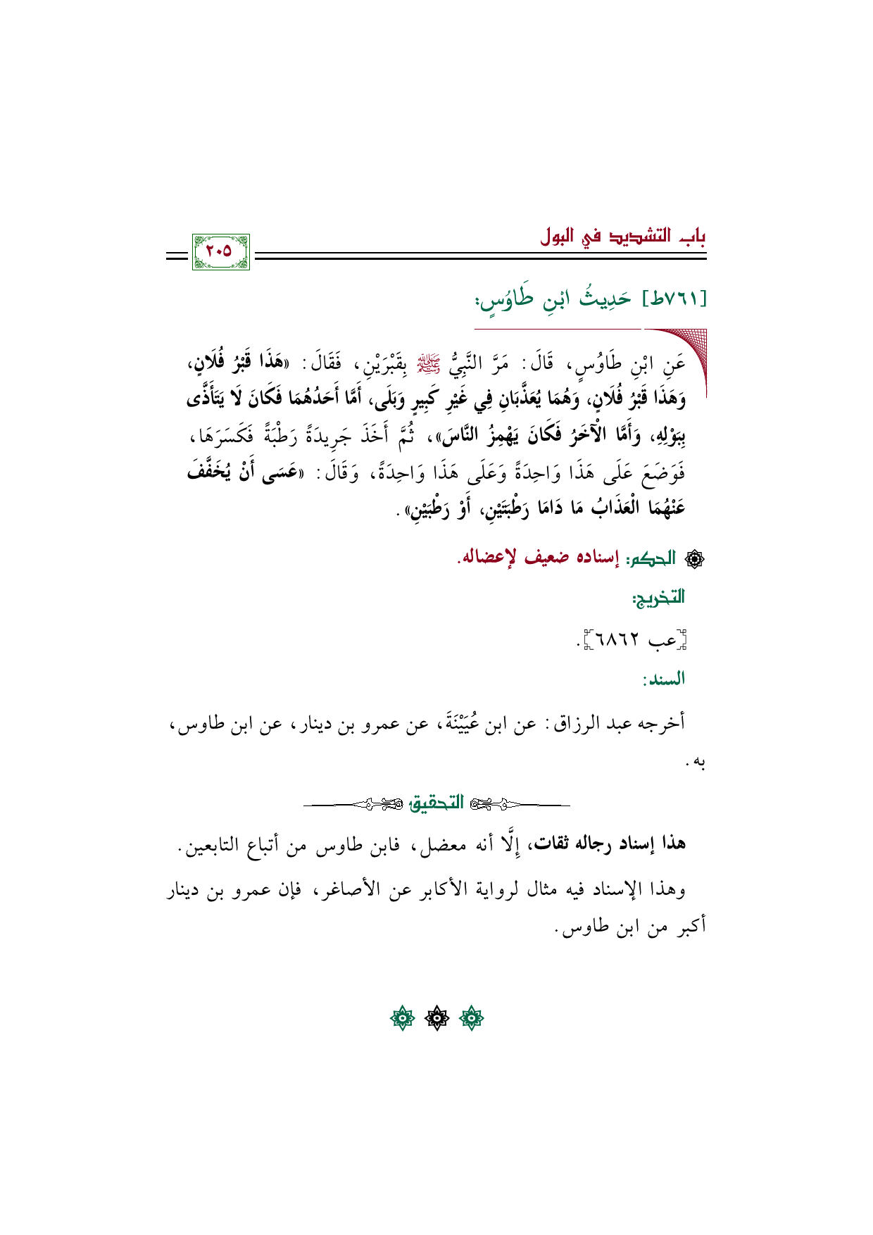 هذا إسناد رجاله ثقات، إِلَّا أنه معضل، فابن طاوس من أتباع التابعين.