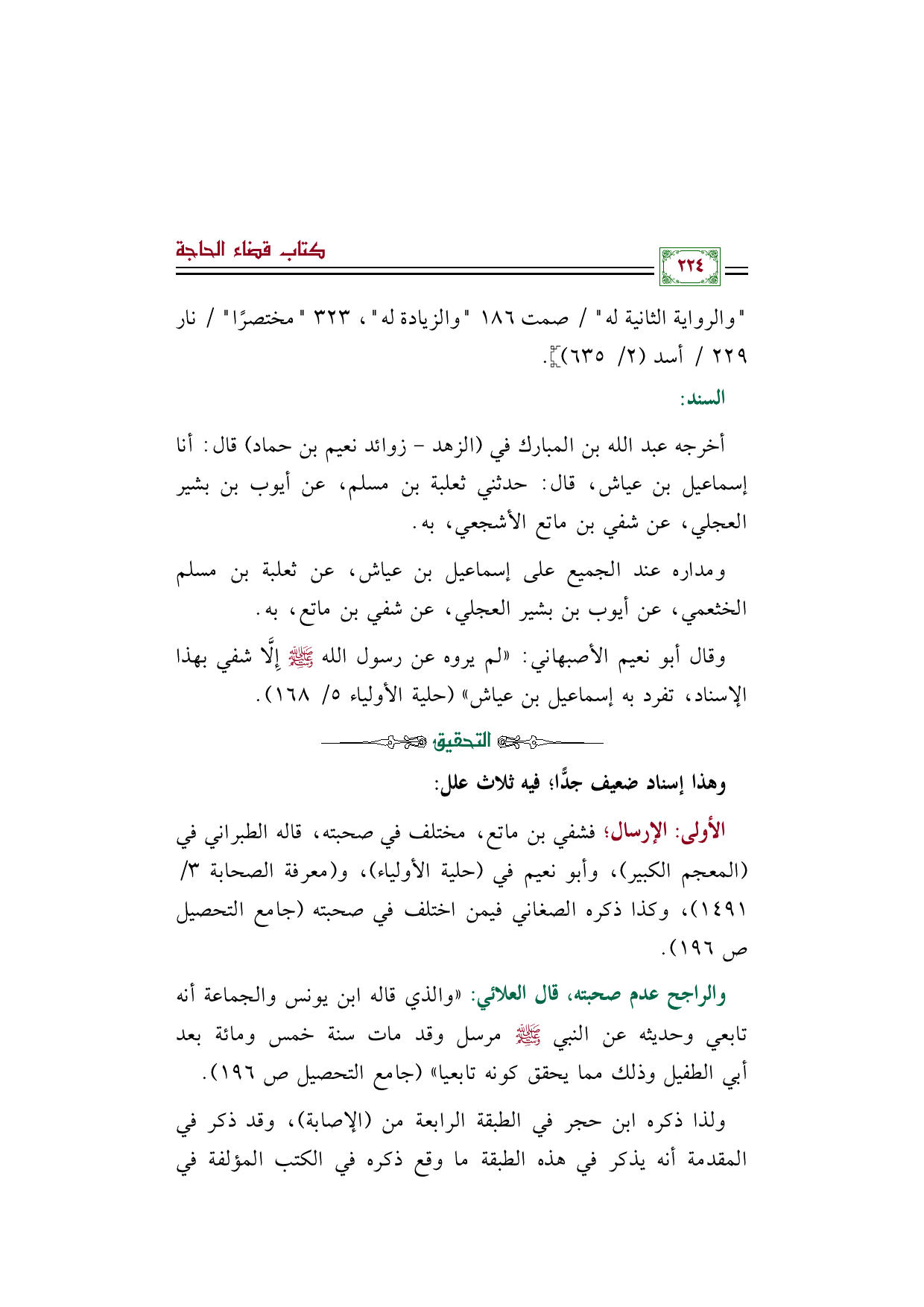 الأولى: الإرسال؛ فشفي بن ماتع، مختلف في صحبته، قاله الطبراني في (المعجم الكبير)، وأبو نعيم في (حلية الأولياء)، و (معرفة الصحابة ٣/ ١٤٩١)، وكذا ذكره الصغاني فيمن اختلف في صحبته (جامع التحصيل ص ١٩٦).