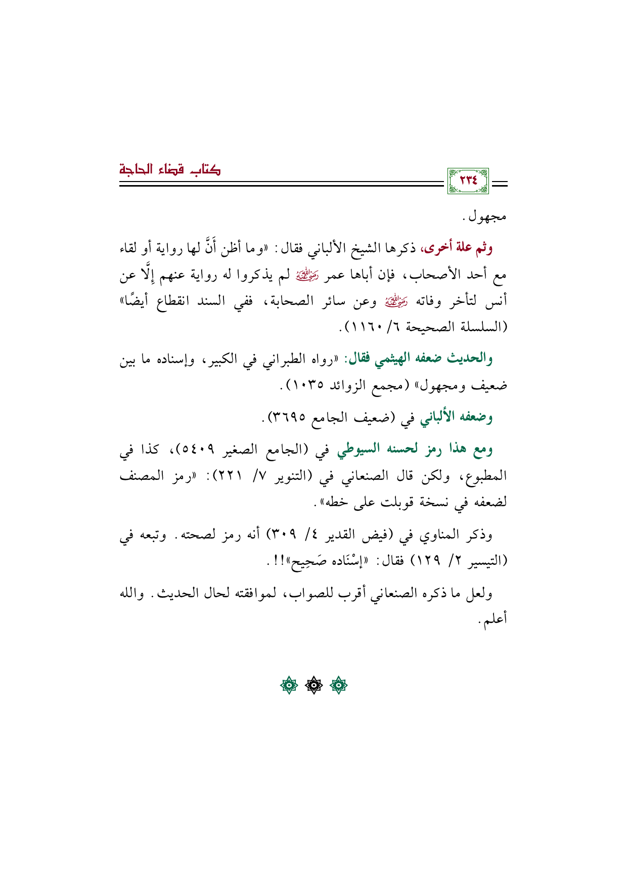 ومع هذا رمز لحسنه السيوطي في (الجامع الصغير ٥٤٠٩)، كذا في المطبوع، ولكن قال الصنعاني في (التنوير ٧/ ٢٢١): "رمز المصنف لضعفه في نسخة قوبلت على خطه".