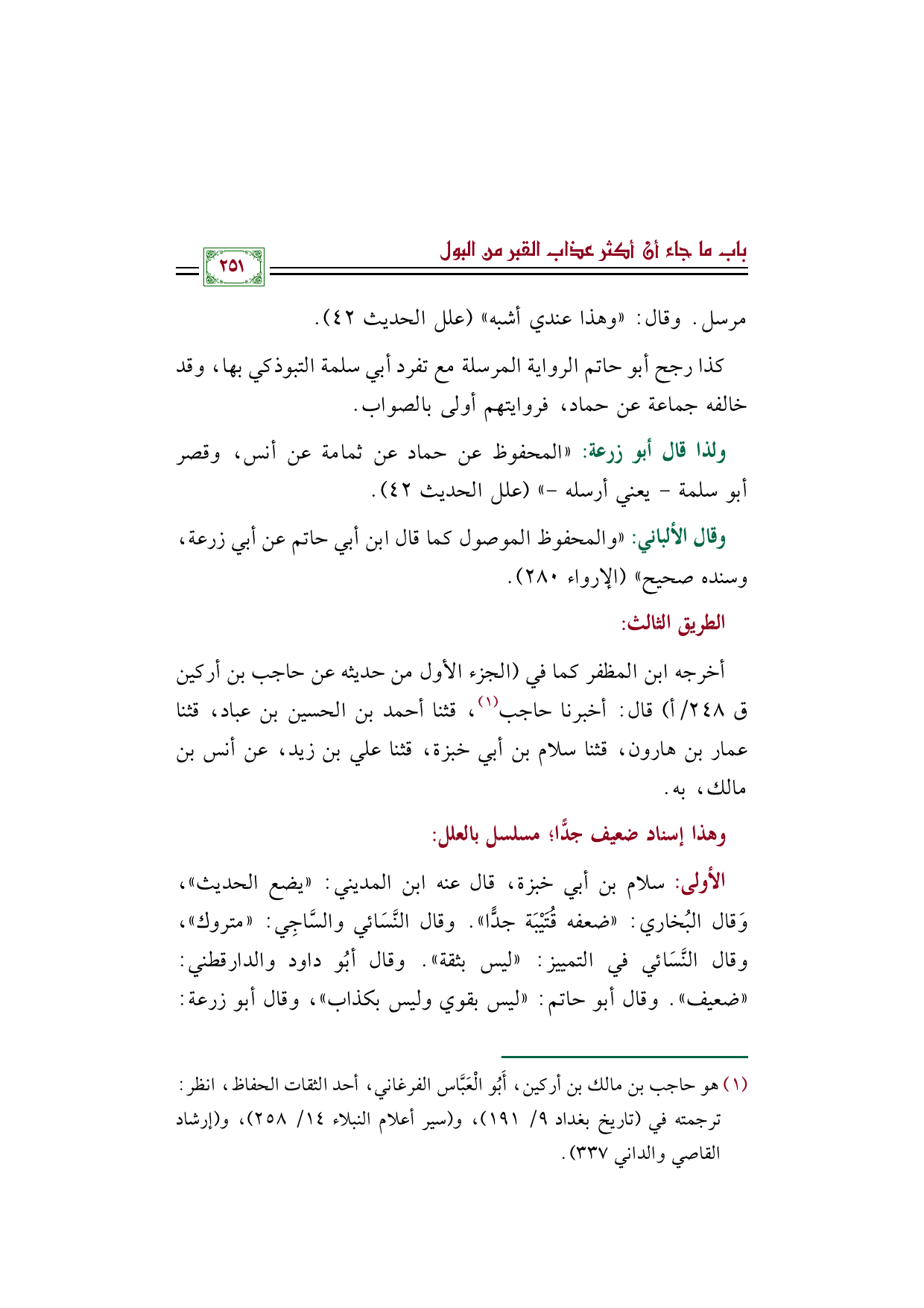 (¬١) هو حاجب بن مالك بن أركين، أَبُو الْعَبَّاس الفرغاني، أحد الثقات الحفاظ، انظر: ترجمته في (تاريخ بغداد ٩/ ١٩١)، و (سير أعلام النبلاء ١٤/ ٢٥٨)، و (إرشاد القاصي والداني ٣٣٧).