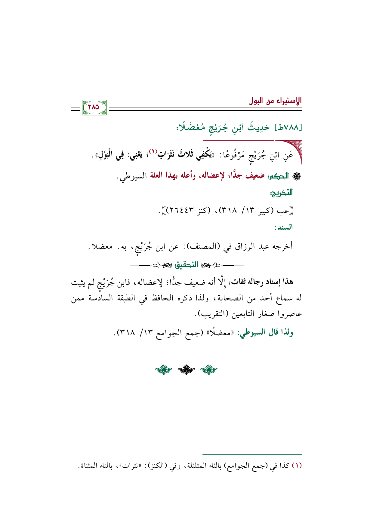 (¬١) كذا في (جمع الجوامع) بالثاء المثلثلة، وفي (الكنز): "نترات"، بالتاء المثناة.