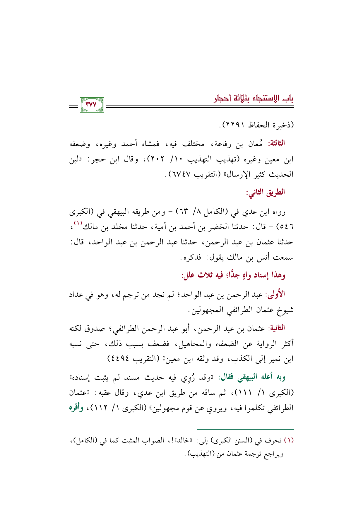 (¬١) - تحرف في السنن الكبرى إلى: "خالد"! ، الصواب المثبت كما في الكامل، ويراجع ترجمة عثمان من التهذيب.