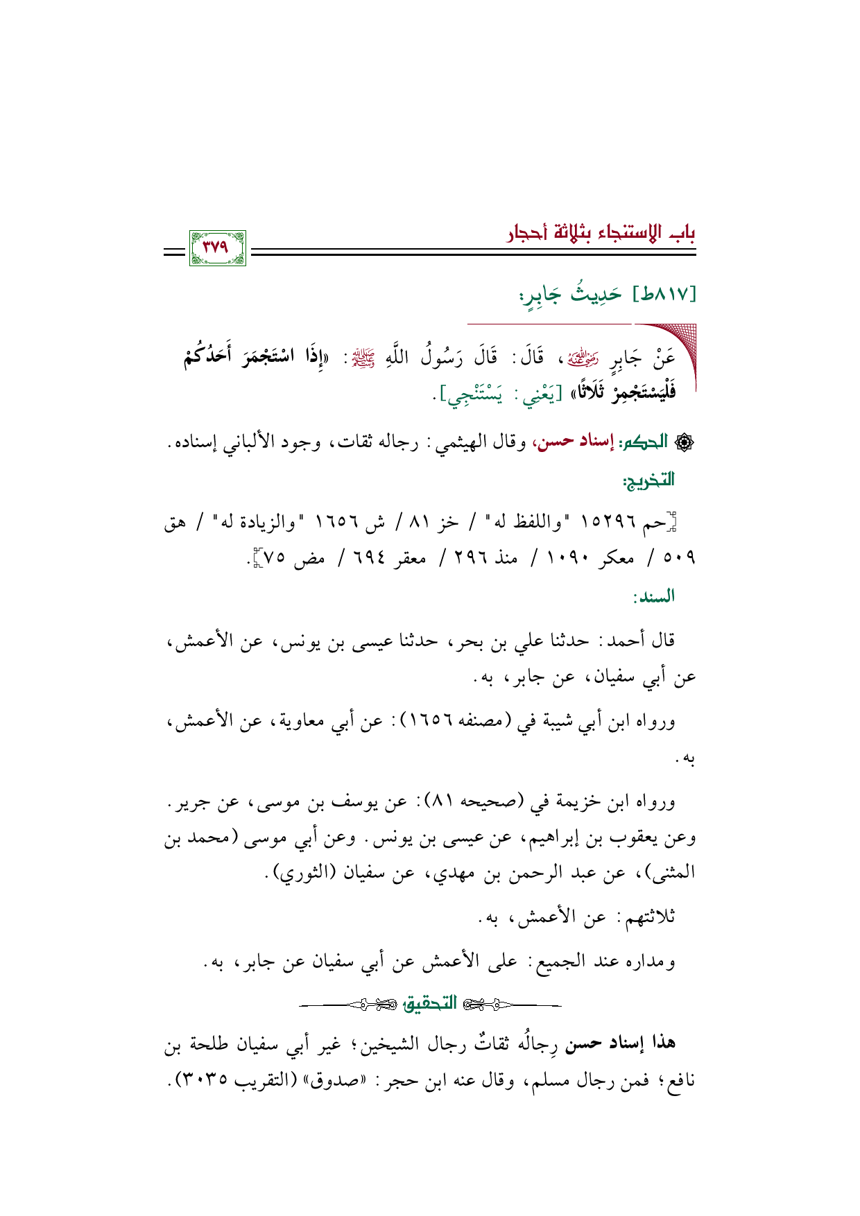 ورواه ابن خزيمة في (صحيحه ٨١): عن يوسف بن موسى، عن جرير. وعن يعقوب بن إبراهيم، عن عيسى بن يونس. وعن أبي موسى (محمد بن المثنى)، عن عبد الرحمن بن مهدي، عن سفيان (الثوري).