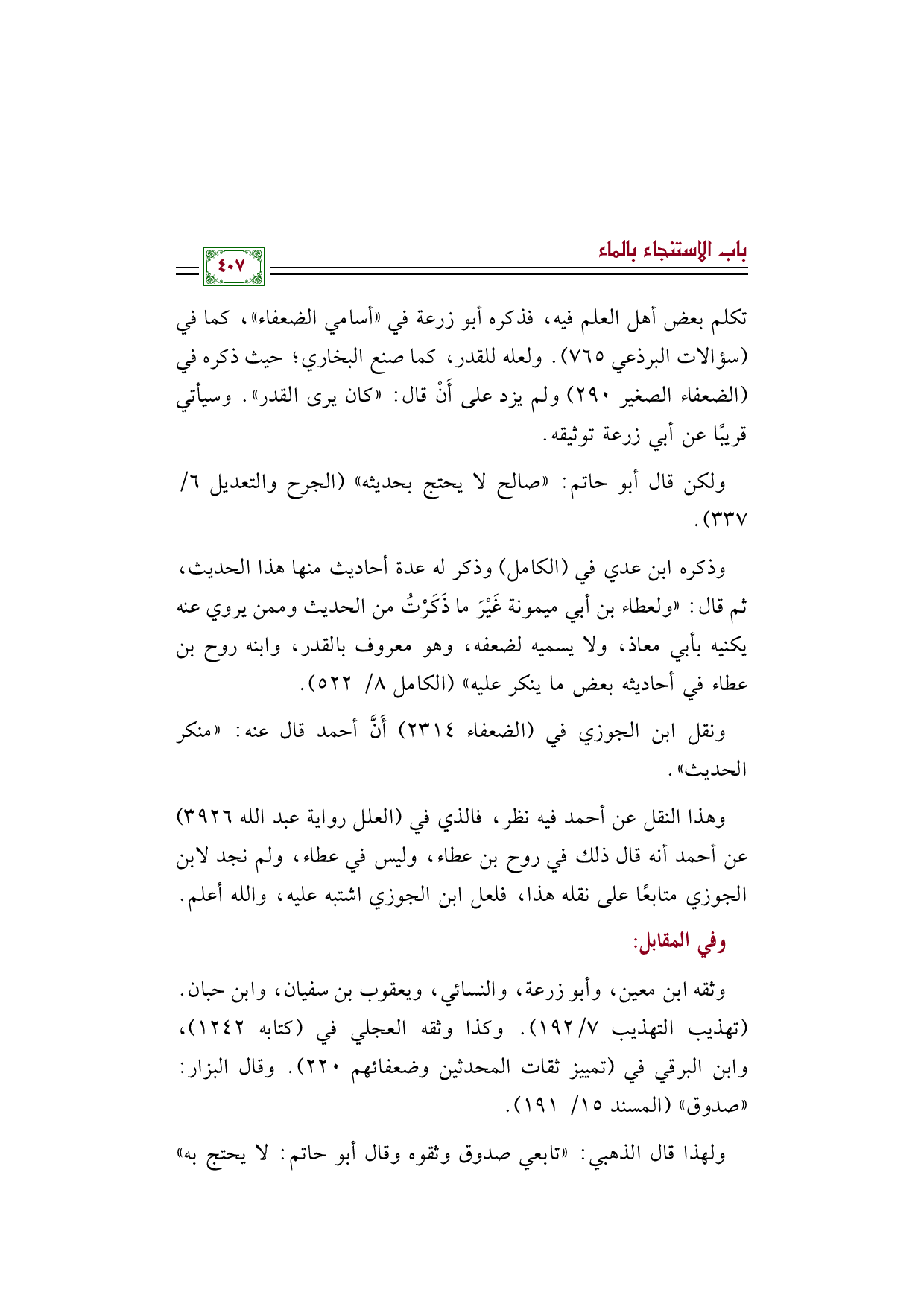 وهذا النقل عن أحمد فيه نظر، فالذي في (العلل رواية عبد الله ٣٩٢٦) عن أحمد أنه قال ذلك في روح بن عطاء، وليس في عطاء، ولم نجد لابن الجوزي متابعًا على نقله هذا، فلعل ابن الجوزي اشتبه عليه، والله أعلم.
