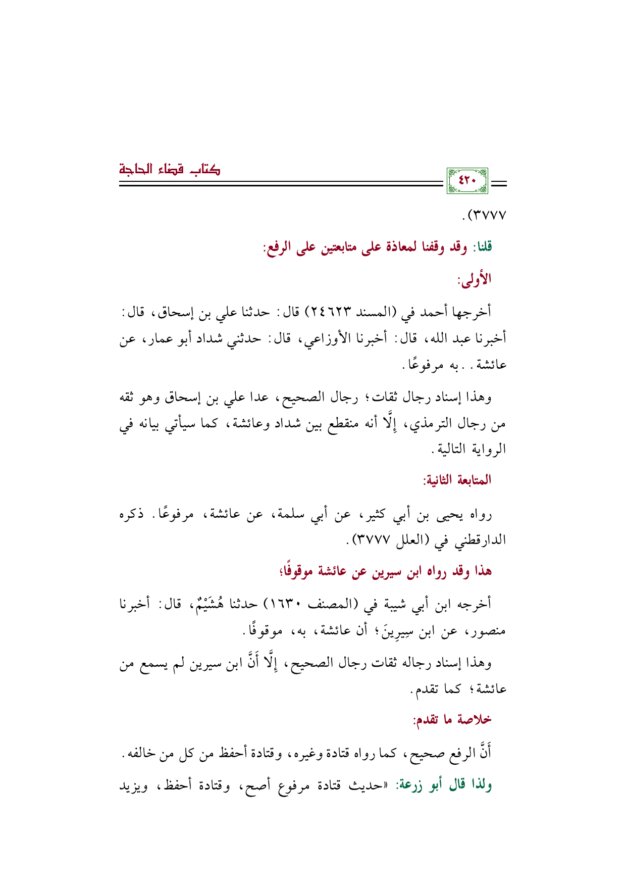 قلنا: وقد وقفنا لمعاذة على متابعتين على الرفع: