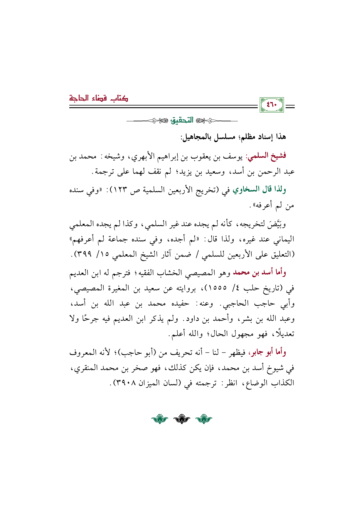 وأما أسد بن محمد وهو المصيصي الخشاب الفقيه؛ فترجم له ابن العديم في (تاريخ حلب ٤/ ١٥٥٥)، بروايته عن سعيد بن المغيرة المصيصي، وأبي حاجب الحاجبي. وعنه: حفيده محمد بن عبد الله بن أسد، وعبد الله بن بشر، وأحمد بن داود. ولم يذكر ابن العديم فيه جرحًا ولا تعديلًا، فهو مجهول الحال؛ والله أعلم.