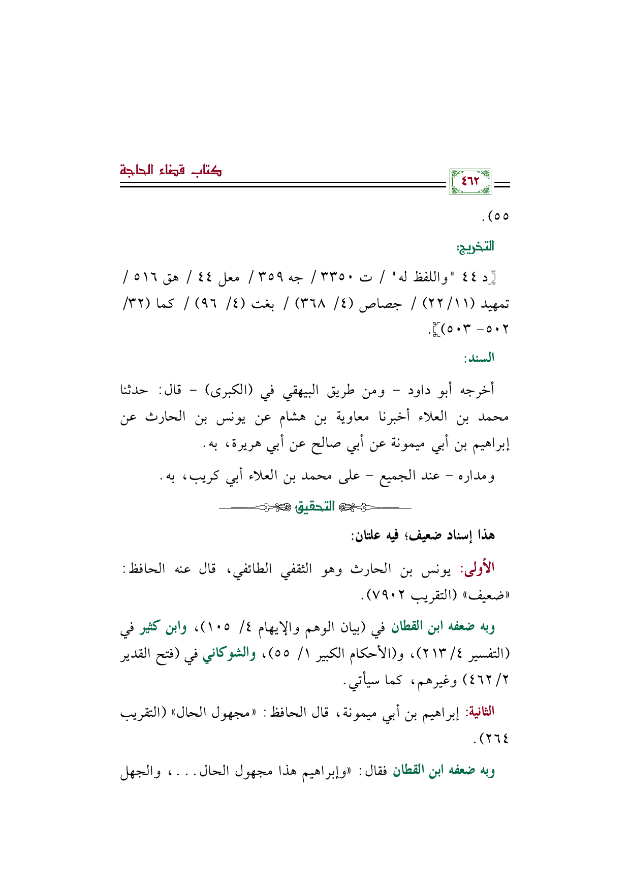 أخرجه أبو داود - ومن طريق البيهقي في (الكبرى) - قال: حدثنا محمد بن العلاء أخبرنا معاوية بن هشام عن يونس بن الحارث عن إبراهيم بن أبي ميمونة عن أبي صالح عن أبي هريرة، به.