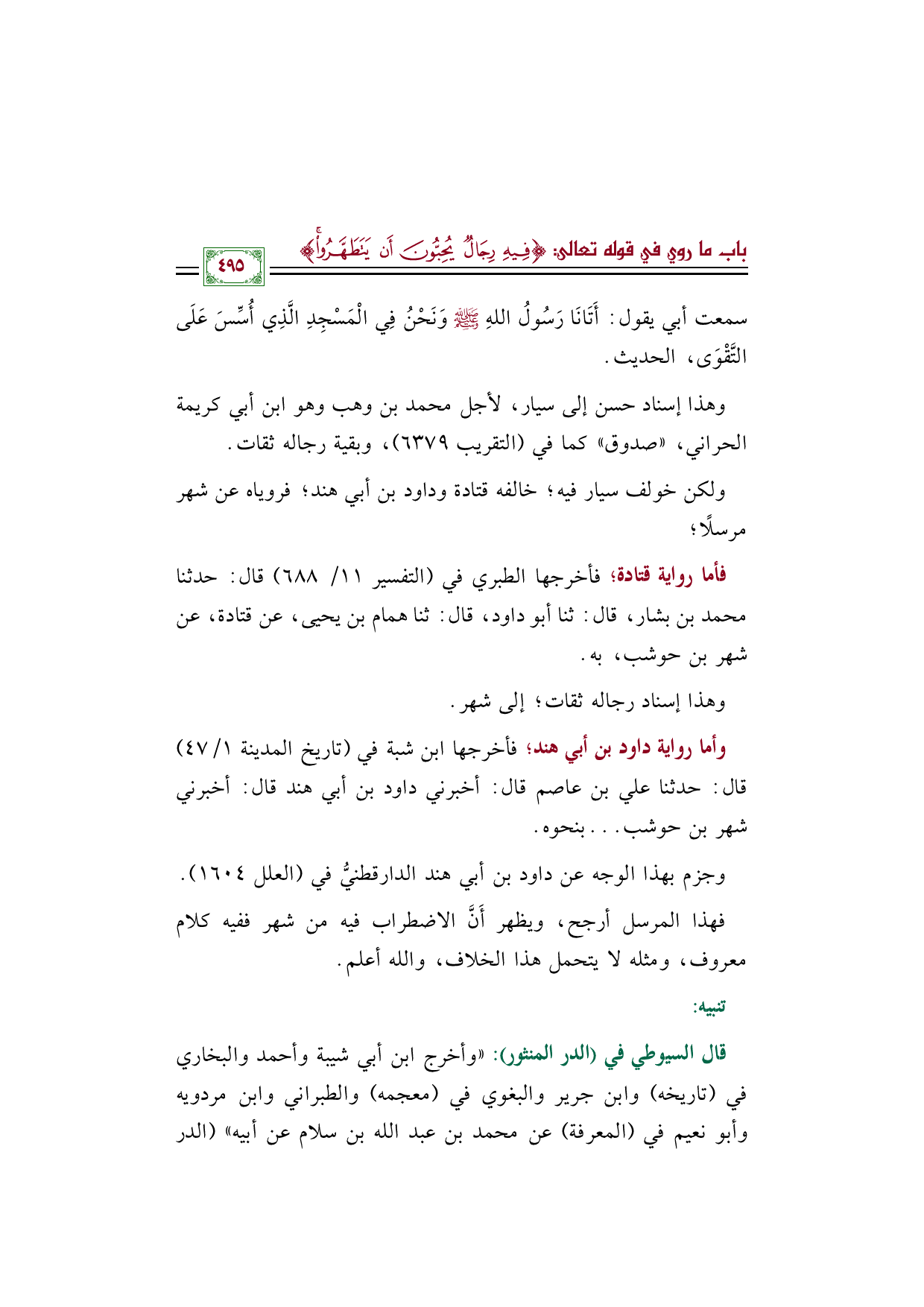 سمعت أبي يقول: أَتَانَا رَسُولُ اللهِ صَلَّى اللَّهُ عَلَيْهِ وَسَلَّمَ وَنَحْنُ فِي الْمَسْجِدِ الَّذِي أُسِّسَ عَلَى التَّقْوَى، الحديث.
