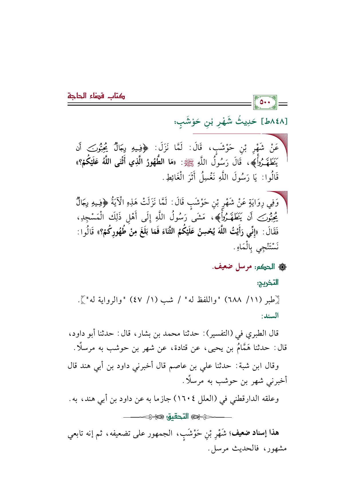 قال الطبري في (التفسير): حدثنا محمد بن بشار، قال: حدثنا أبو داود، قال: حدثنا هَمَّامُ بن يحيى، عن قتادة، عن شهر بن حوشب به مرسلًا.