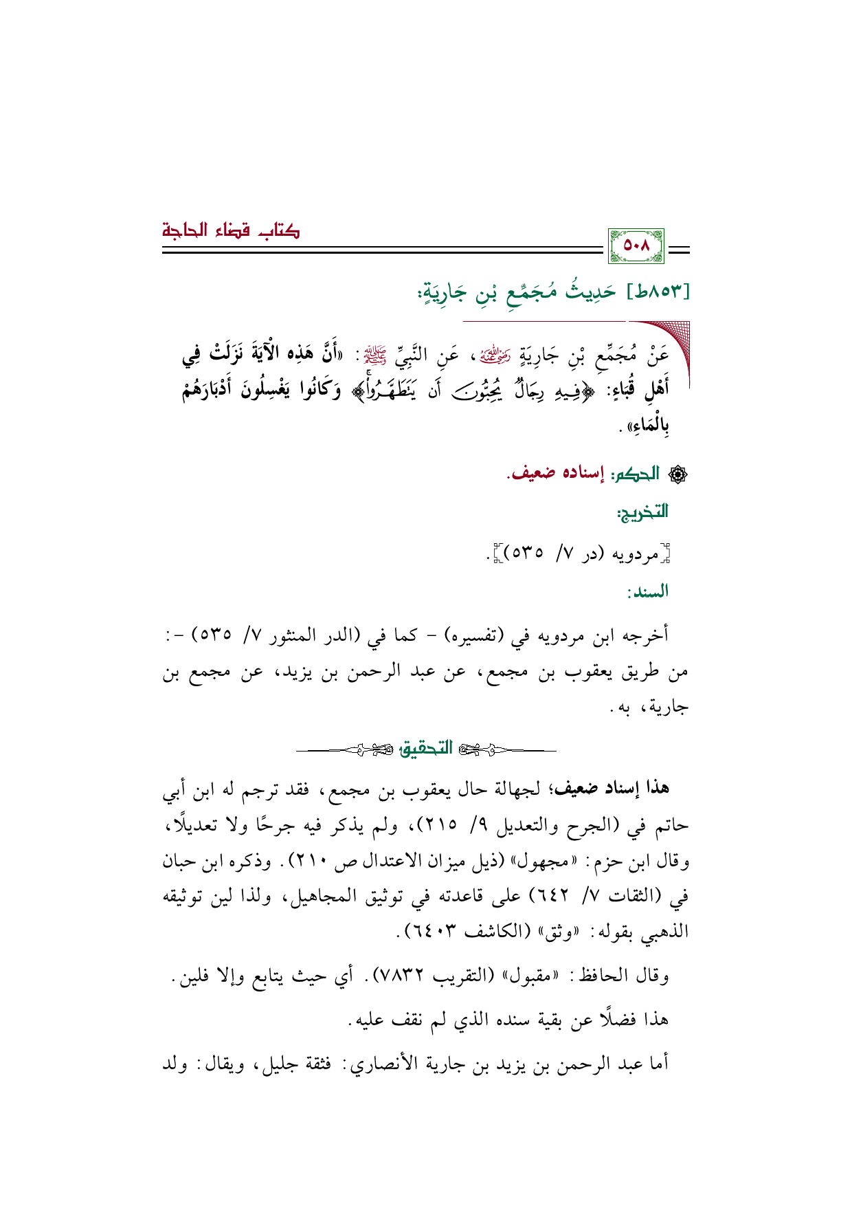 ٨٥٣ - حَدِيثُ مُجَمِّعِ بْنِ جَارِيَةٍ:
