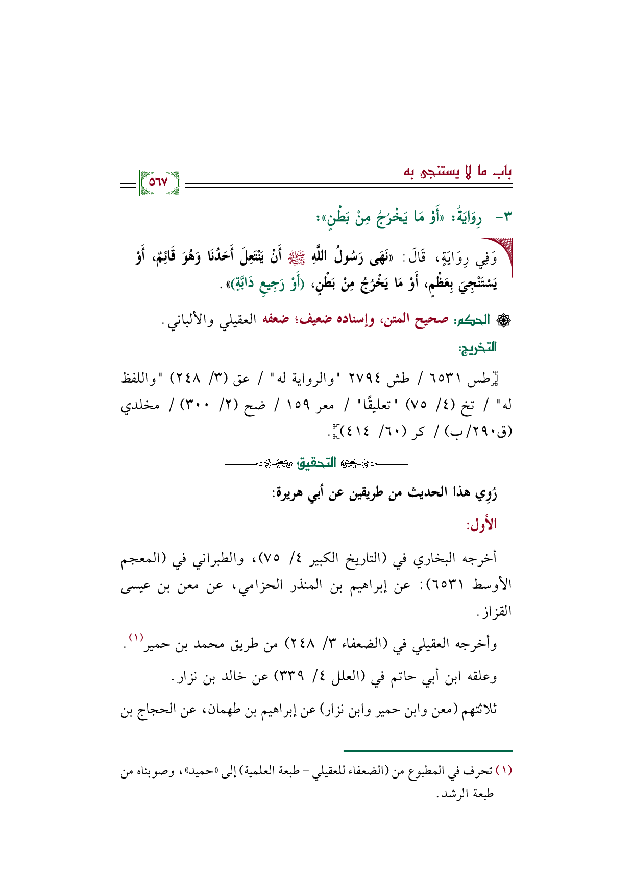 وأخرجه العقيلي في (الضعفاء ٣/ ٢٤٨) من طريق محمد بن حمير (¬١).