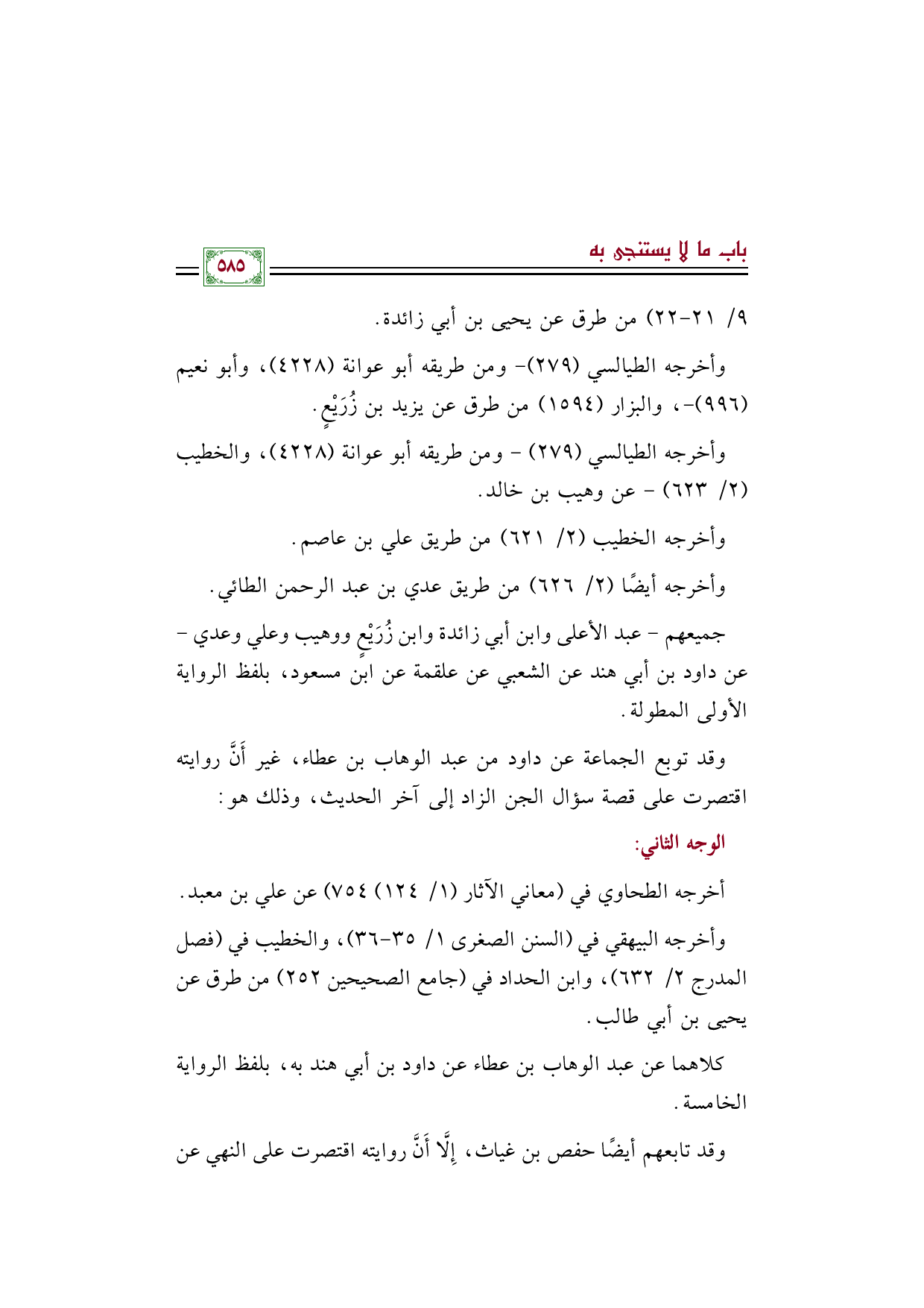 ٩/ ٢١ - ٢٢) من طرق عن يحيى بن أبي زائدة.