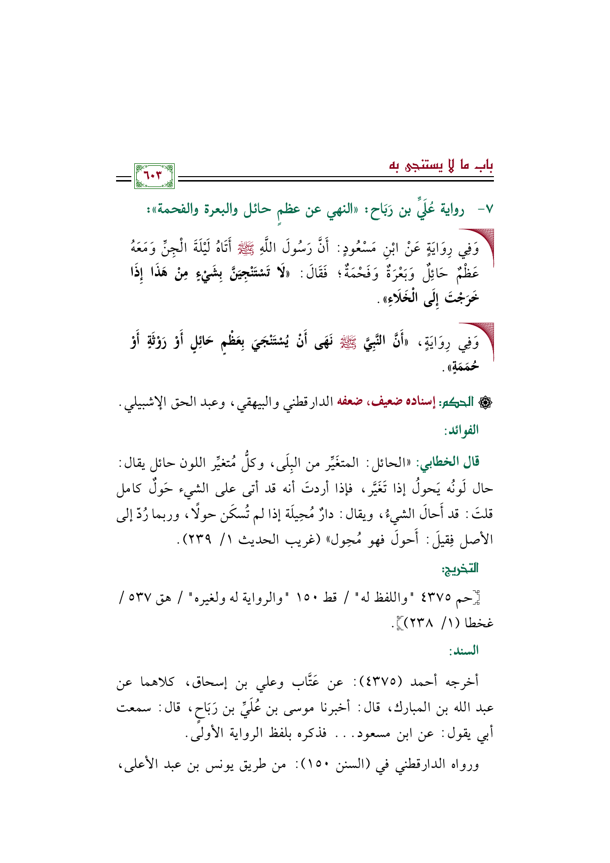 [الحكم]: إسناده ضعيف، ضعفه الدارقطني والبيهقي، وعبد الحق الإشبيلي.