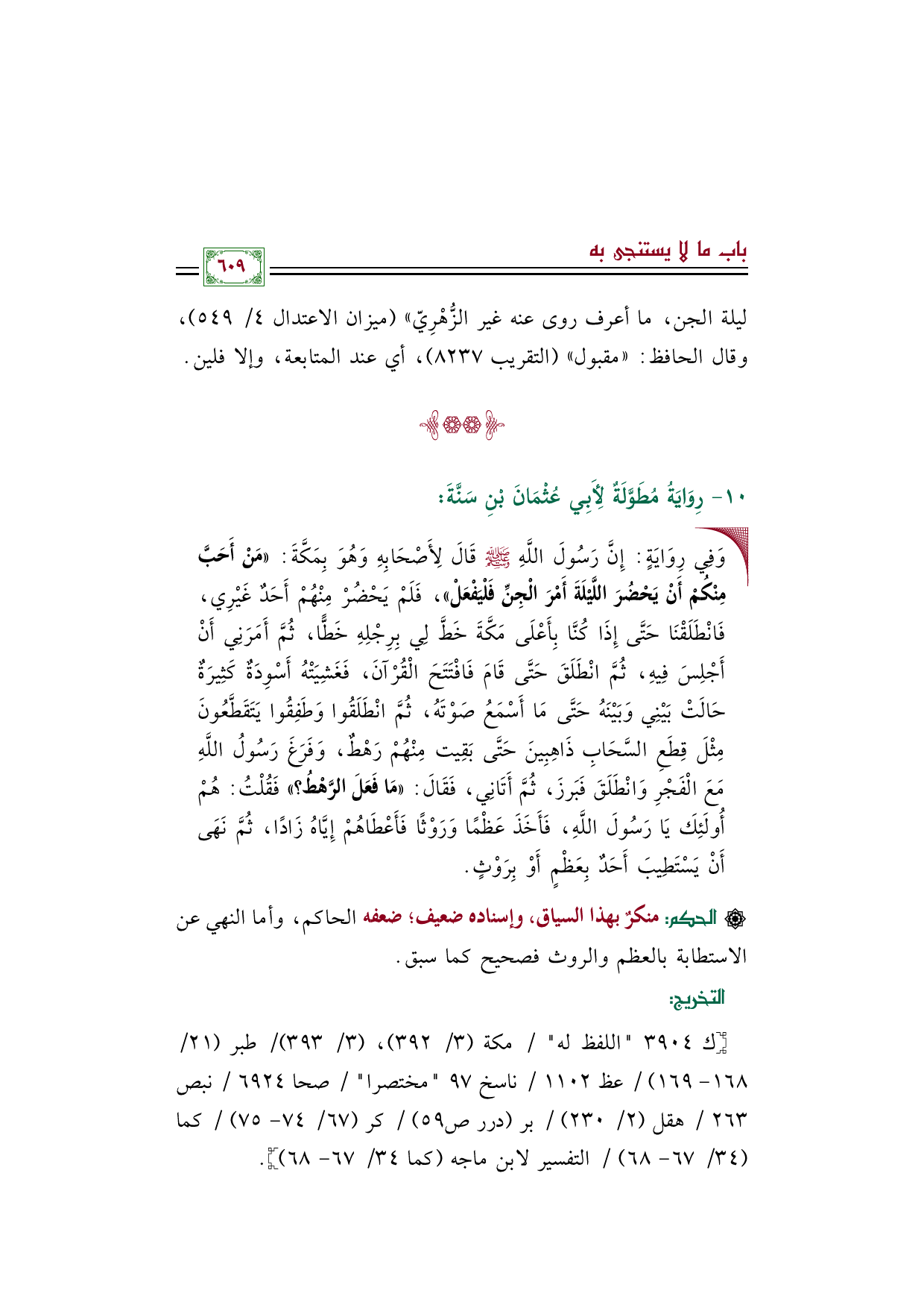 رِوَايَةُ مُطَوَّلَةٌ لِأَبِي عُثْمَانَ بْنِ سَنَّةَ: