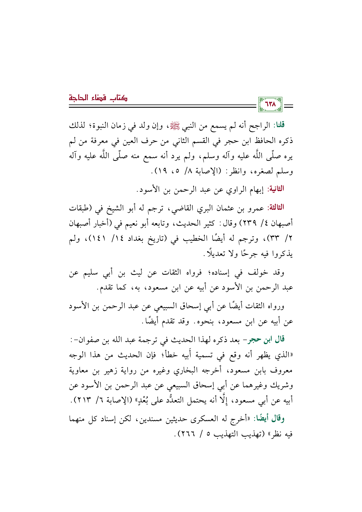 الثالثة: عمرو بن عثمان البري القاضي، ترجم له أبو الشيخ في (طبقات أصبهان ٤/ ٢٣٩) وقال: كثير الحديث، وتابعه أبو نعيم في (أخبار أصبهان ٢/ ٣٣)، وترجم له أيضًا الخطيب في (تاريخ بغداد ١٤/ ١٤١)، ولم يذكروا فيه جرحًا ولا تعديلًا.