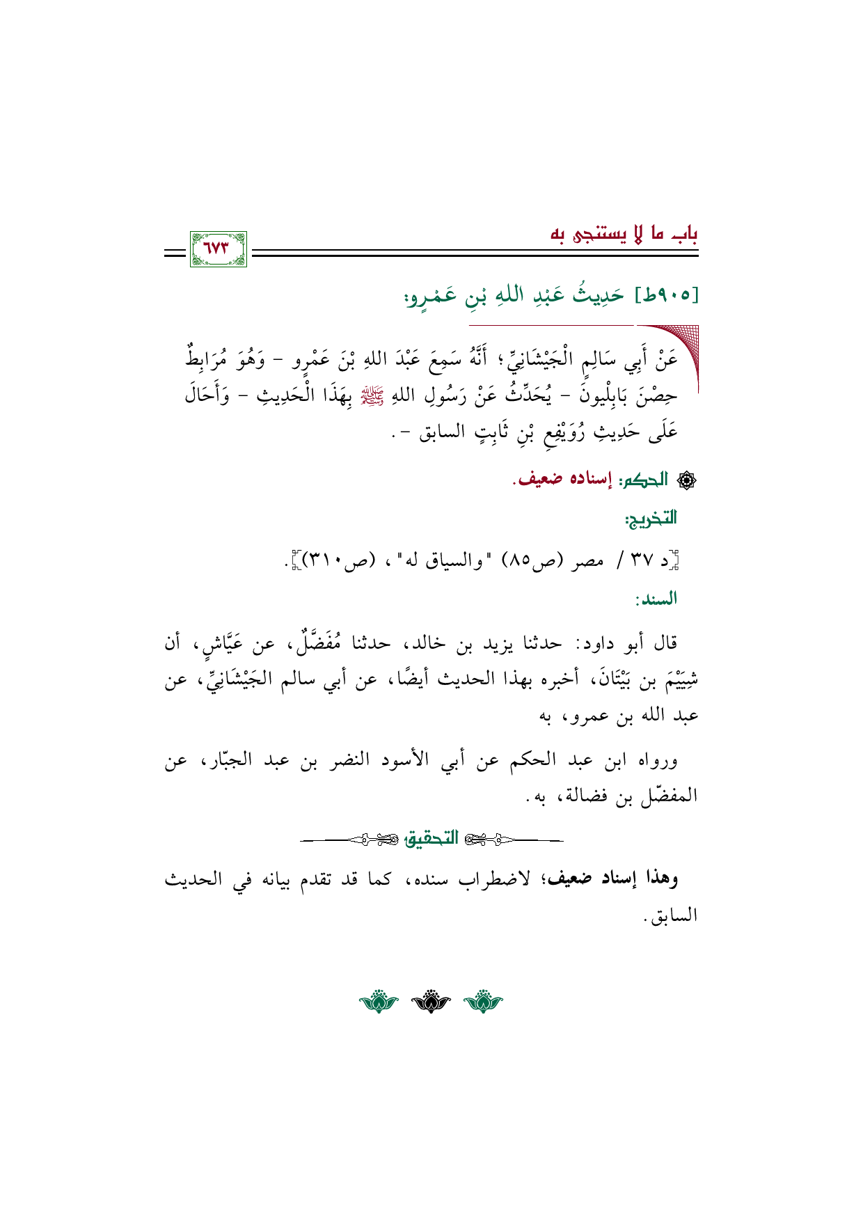 قال أبو داود: حدثنا يزيد بن خالد، حدثنا مُفَضَّلٌ، عن عَيَّاشٍ، أن شِيَيْمَ بن بَيْتَانَ، أخبره بهذا الحديث أيضًا، عن أبي سالم الجَيْشَانِيِّ، عن عبد الله بن عمرو، به