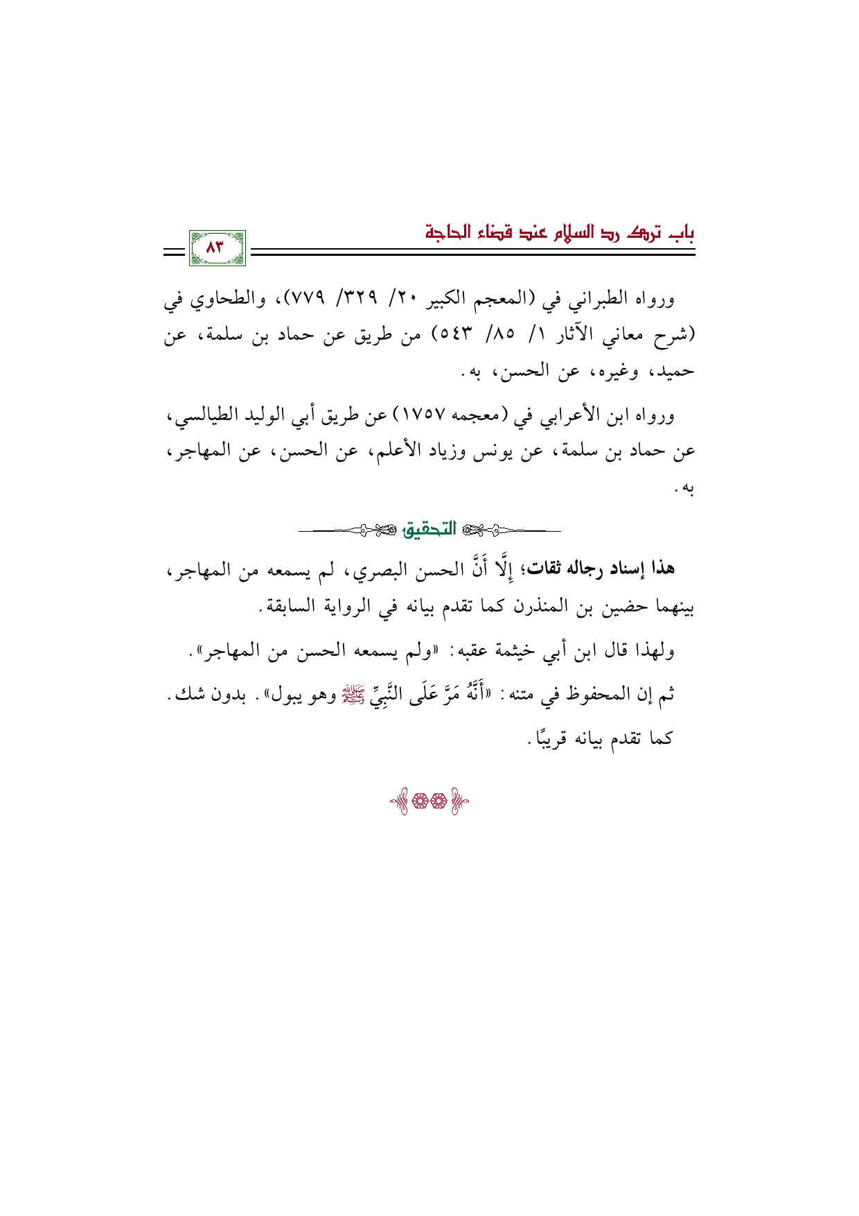 ورواه الطبراني في (المعجم الكبير ٢٠/ ٣٢٩/ ٧٧٩)، والطحاوي في (شرح معاني الآثار (١/ ٨٥/ ٥٤٣) من طريق عن حماد بن سلمة، عن حميد، وغيره، عن الحسن، به.
