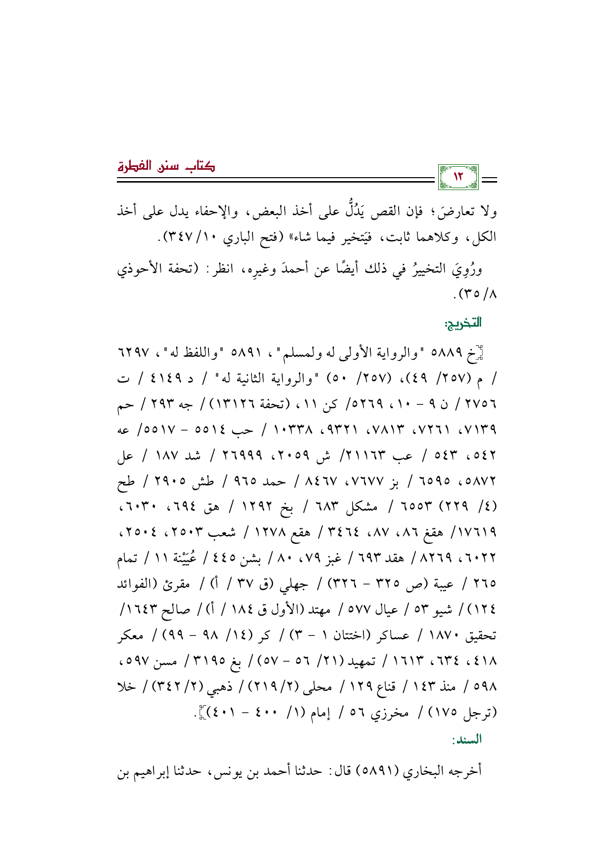 ورُوِيَ التخييرُ في ذلك أيضًا عن أحمدَ وغيرِه، انظر (تحفة الأحوذي ٨/ ٣٥).