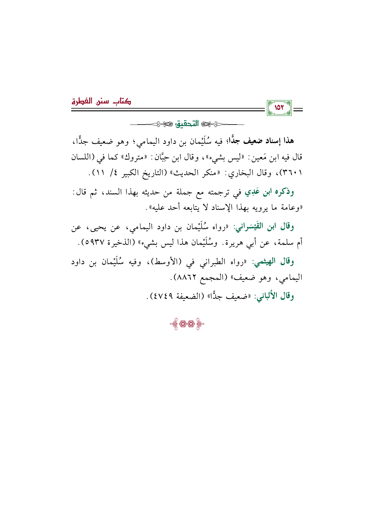 وقال الهيثمي: "رواه الطبراني في الأوسط، وفيه سُلَيْمان بن داود اليمامي، وهو ضعيف" (المجمع ٨٨٦٢).