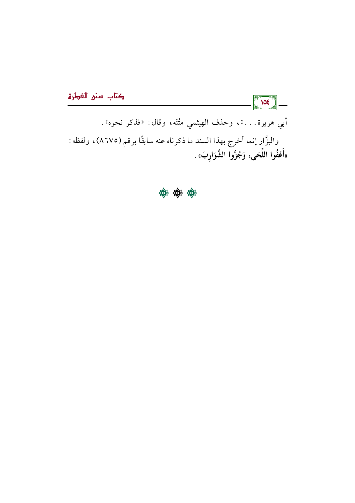 والبزَّار إنما أخرج بهذا السند ما ذكرناه عنه سابقًا برقم (٨٦٧٥)، ولفظه: "أَعْفُوا اللِّحَى، وَجُزُّوا الشَّوَارِبَ".