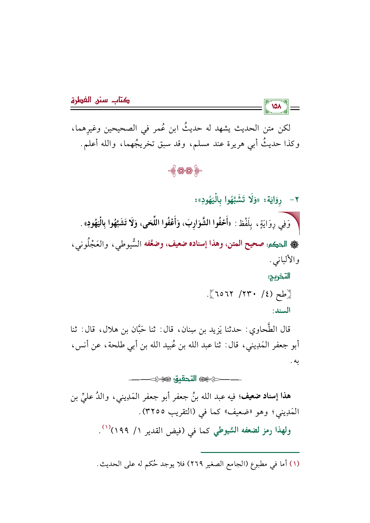 قال الطَّحاوي: حدثنا يَزيد بن سِنان، قال: ثنا حَبَّان بن هلال، قال: ثنا أبو جعفر المَدِيني، قال: ثنا عبد الله بن عُبيد الله بن أبي طلحة، عن أنس، به.