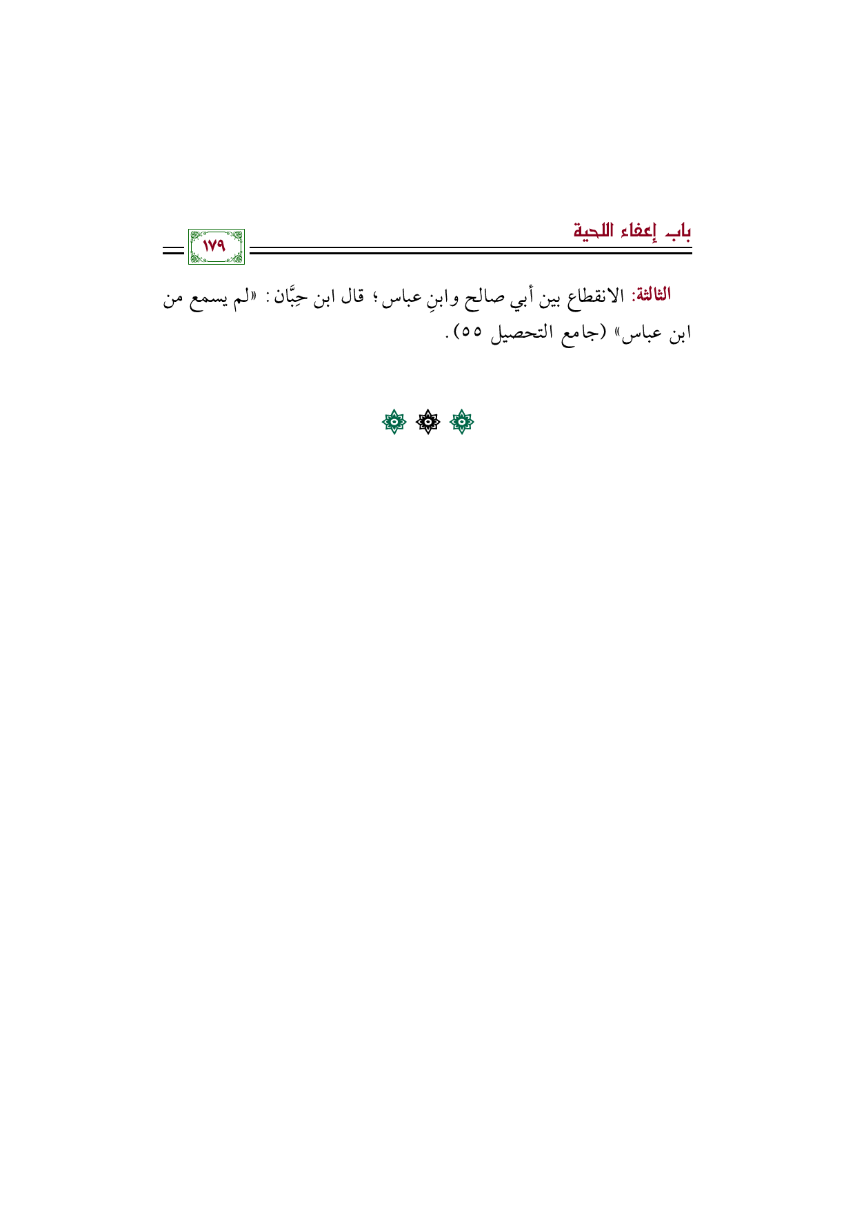 الثالثة: الانقطاع بين أبي صالح وابنِ عباس؛ قال ابن حِبَّان: "لم يسمع من ابن عباس" (جامع التحصيل ٥٥).