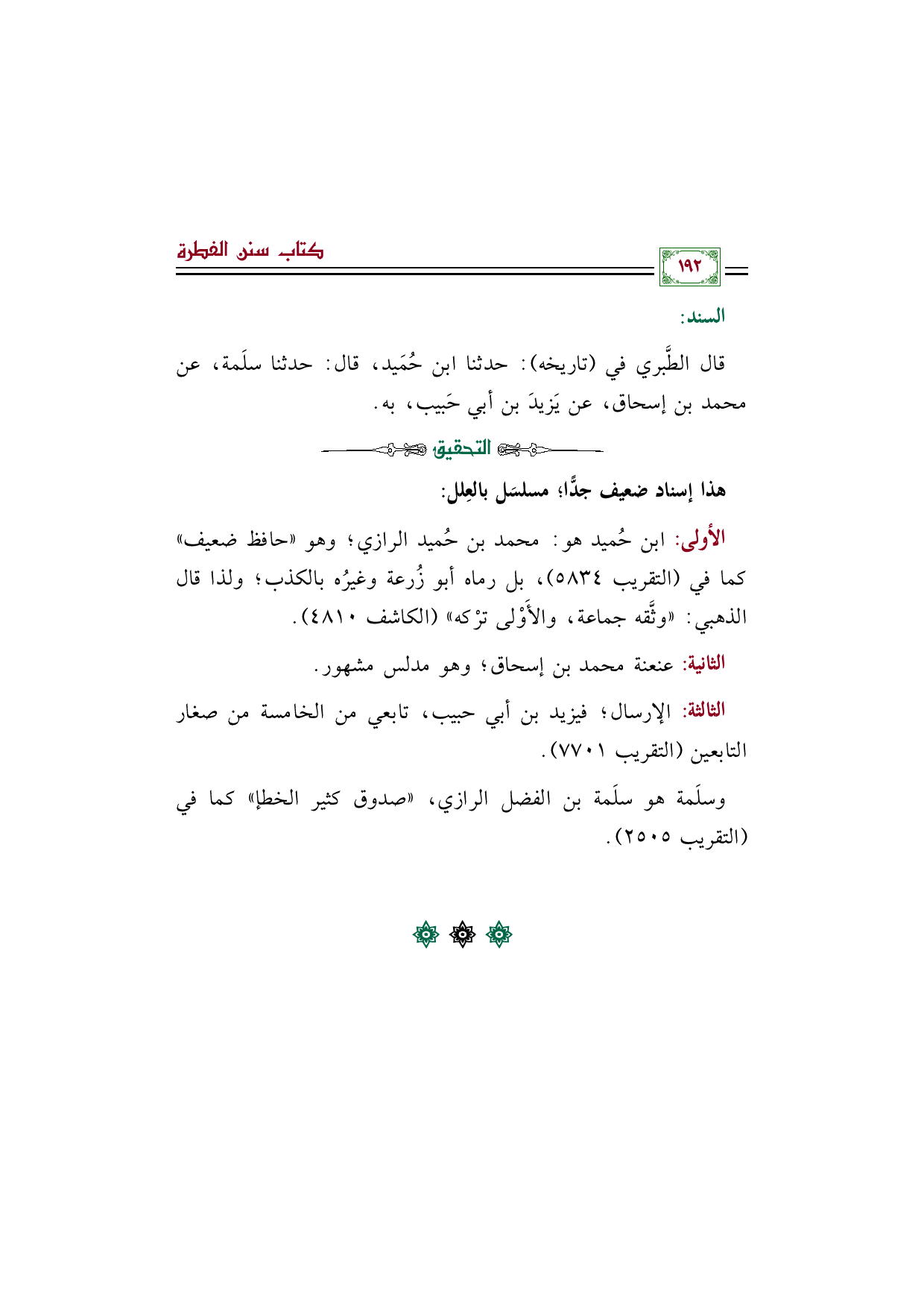 الثالثة: الإرسال؛ فيزيد بن أبي حبيب، تابعي من الخامسة من صغار التابعين (التقريب ٧٧٠١).