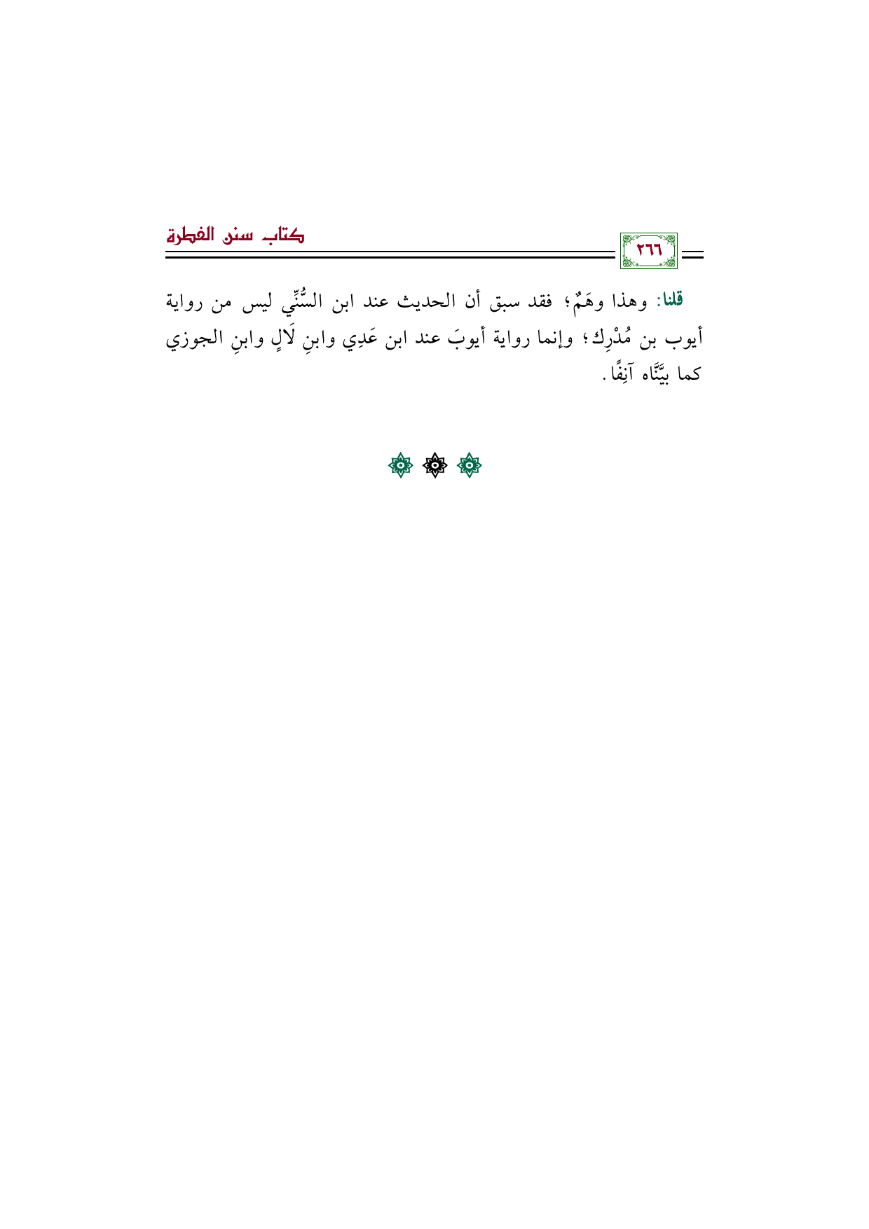 قلنا: وهذا وهَمٌ؛ فقد سبق أن الحديث عند ابن السُّنِّي ليس من رواية أيوب بن مُدْرِك؛ وإنما رواية أيوبَ عند ابن عَدِي وابنِ لَالٍ وابنِ الجوزي كما بيَّنَّاه آنِفًا.