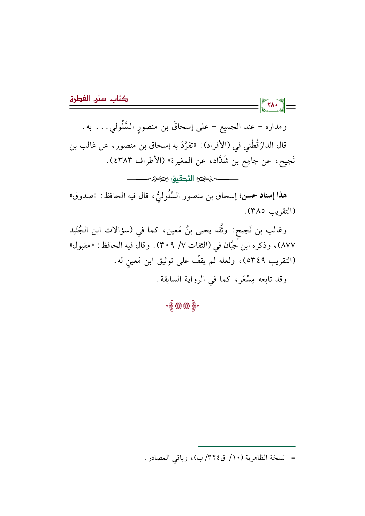 ومداره- عند الجميع- على إسحاقَ بن منصورٍ السَّلُولي ... به.