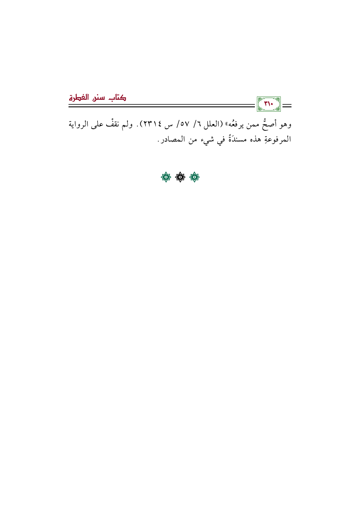 وهو أصحُّ ممن يرفعُه" (العلل ٦/ ٥٧/ س ٢٣١٤). ولم نقفْ على الرواية المرفوعةِ هذه مسندَةً في شيء من المصادر.