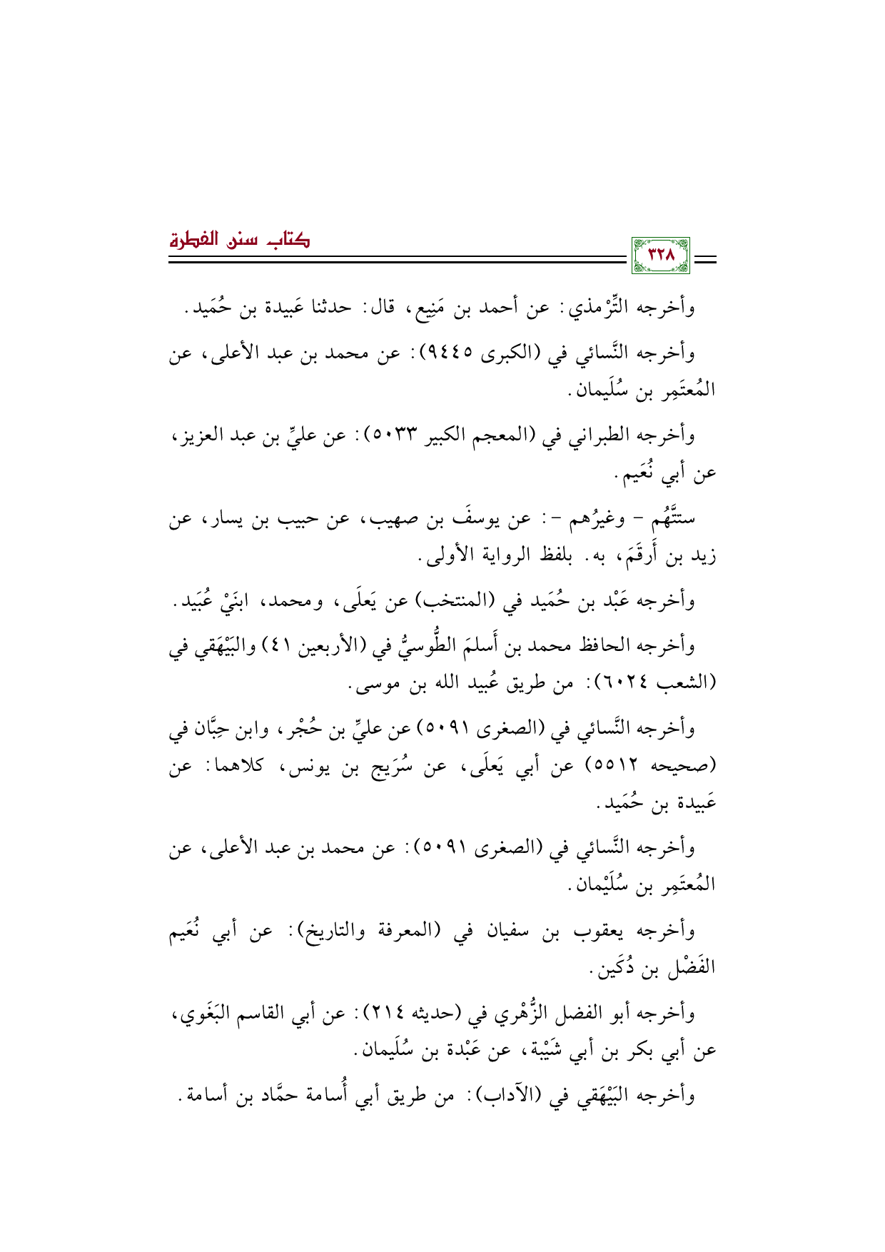 وأخرجه النَّسائي في (الصغرى ٥٠٩١) عن عليِّ بن حُجْر، وابن حِبَّان في (صحيحه ٥٥١٢) عن أبي يَعلَى، عن سُرَيج بن يونس، كلاهما: عن عَبيدة بن حُمَيد.