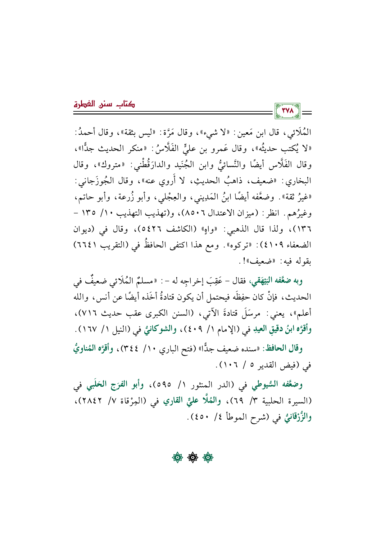 وبه ضعَّفه البَيْهَقي، فقال- عَقِبَ إخراجِه له-: "مسلمٌ المُلَائي ضعيفٌ في الحديث، فإنْ كان حفِظَه فيحتمل أن يكون قتادةُ أخَذه أيضًا عن أنس، والله أعلم"، يعني: مرسَلَ قتادةَ الآتي، (السنن الكبرى عقب حديث ٧١٦)، وأقرَّه ابنُ دقيقِ العيدِ في (الإمام ١/ ٤٠٩)، والشوكانيُّ في (النيل ١/ ١٦٧).