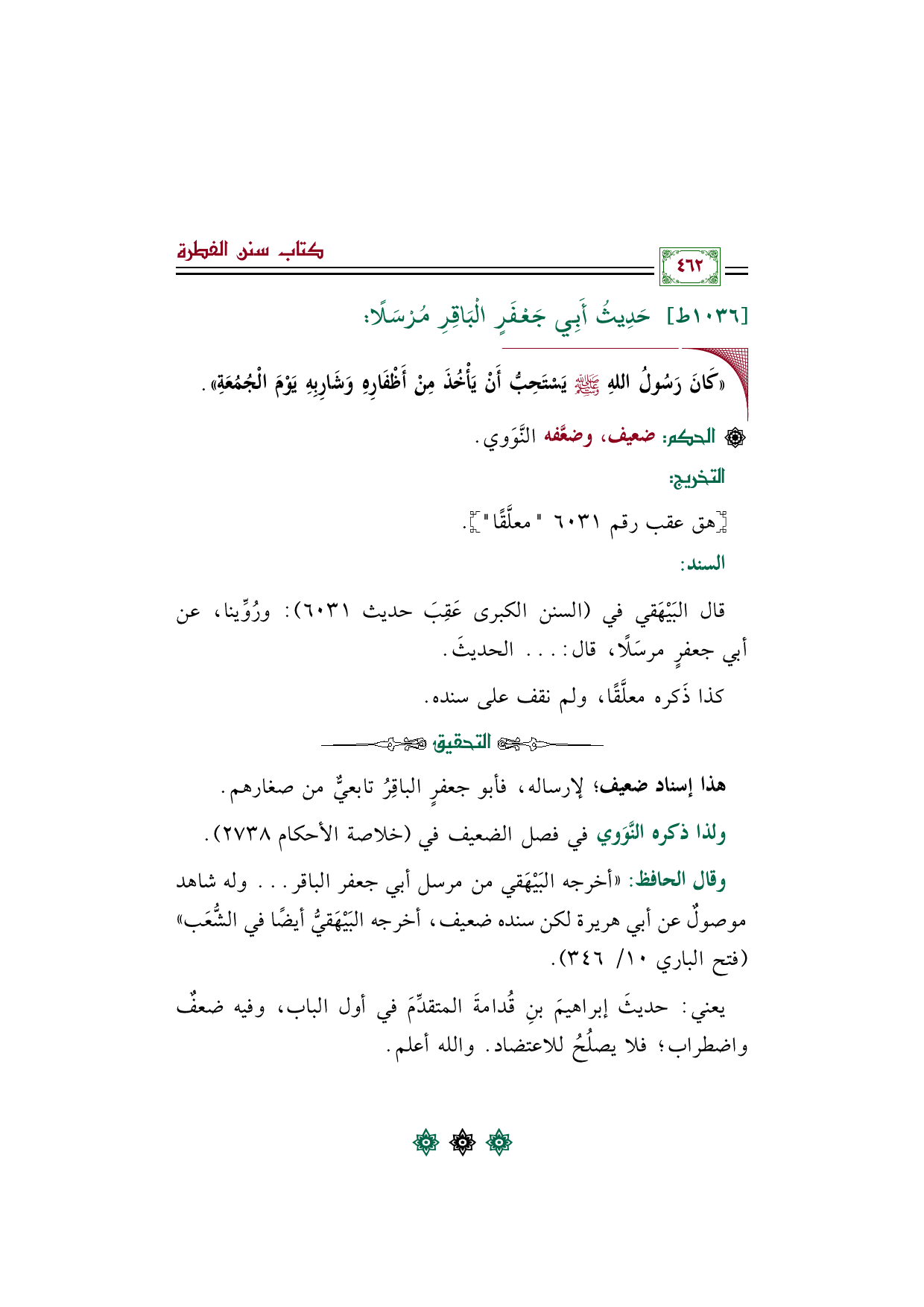 قال البَيْهَقي في (السنن الكبرى عَقِبَ حديث ٦٠٣١: ورُوِّينا، عن أبي جعفرٍ مرسَلًا، قال: ... الحديثَ.