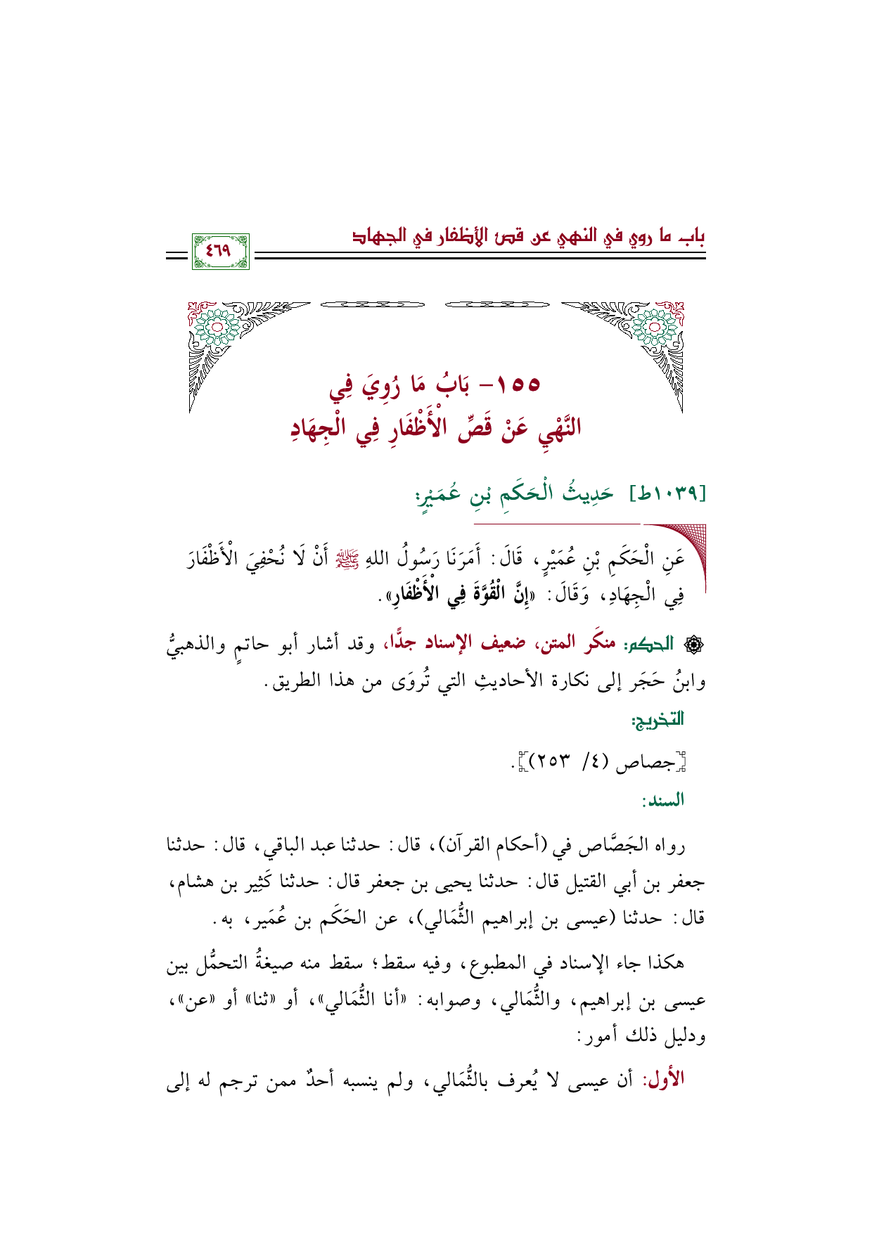 رواه الجَصَّاص في (أحكام القرآن)، قال: حدثنا عبد الباقي، قال: حدثنا جعفر بن أبي القتيل قال: حدثنا يحيى بن جعفر قال: حدثنا كَثِير بن هشام، قال: حدثنا (عيسى بن إبراهيم الثُّمَالي)، عن الحَكَم بن عُمَير، به.