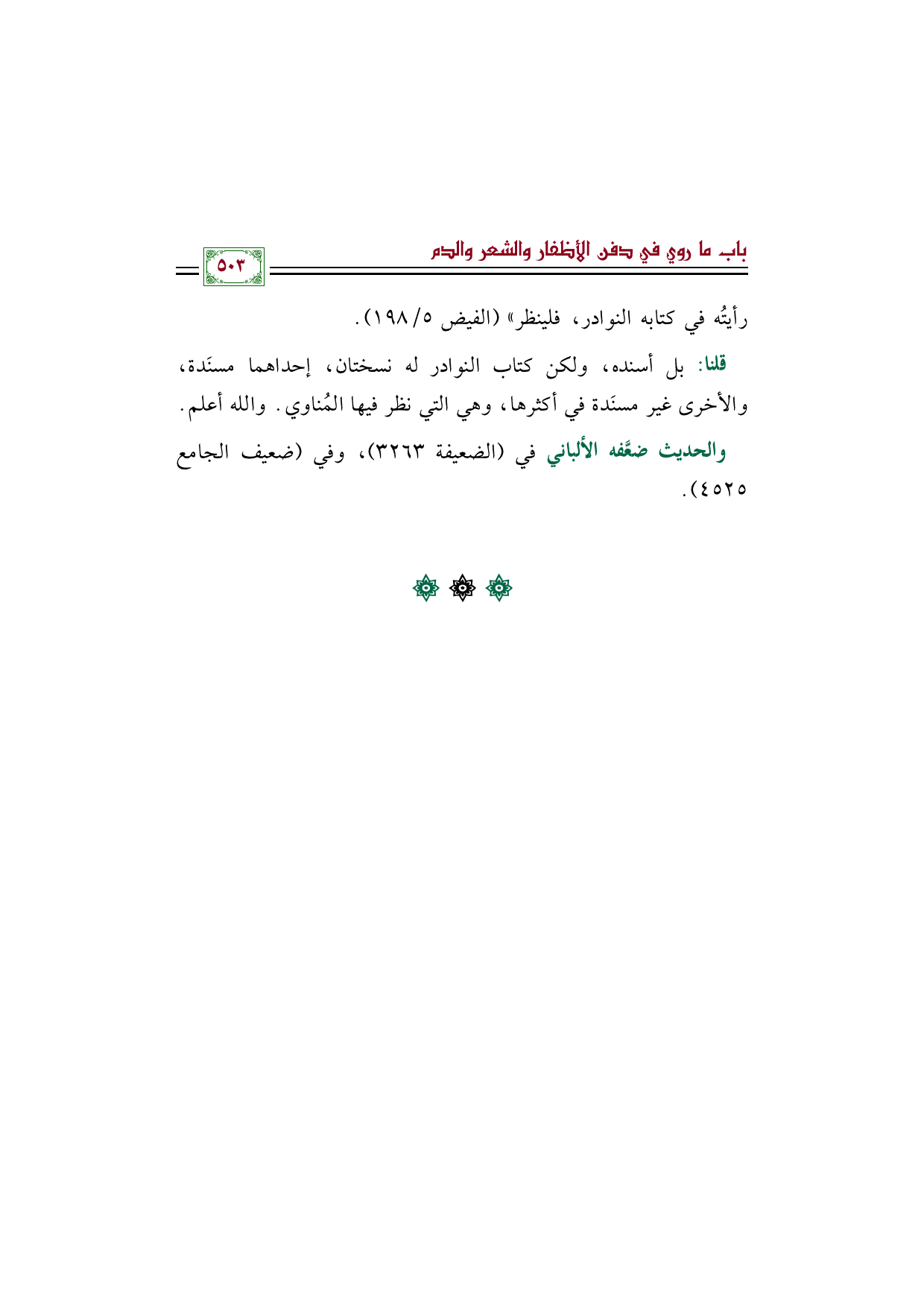 رأيتُه في كتابه النوادر، فلينظر" (الفيض ٥/ ١٩٨).