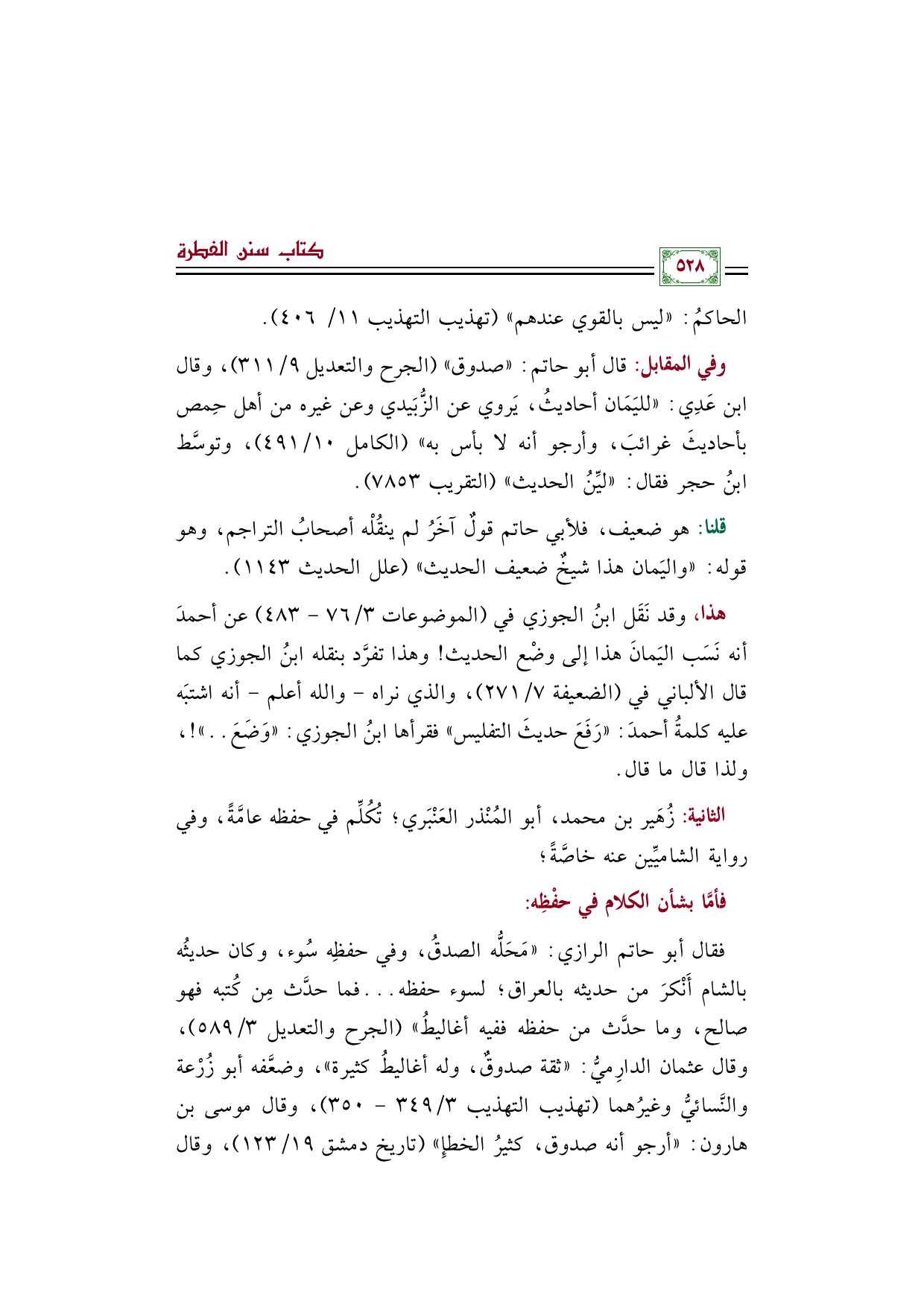 الثانية: زُهَير بن محمد، أبو المُنْذر العَنْبَري؛ تُكُلِّم في حفظه عامَّةً، وفي رواية الشاميِّين عنه خاصَّةً؛