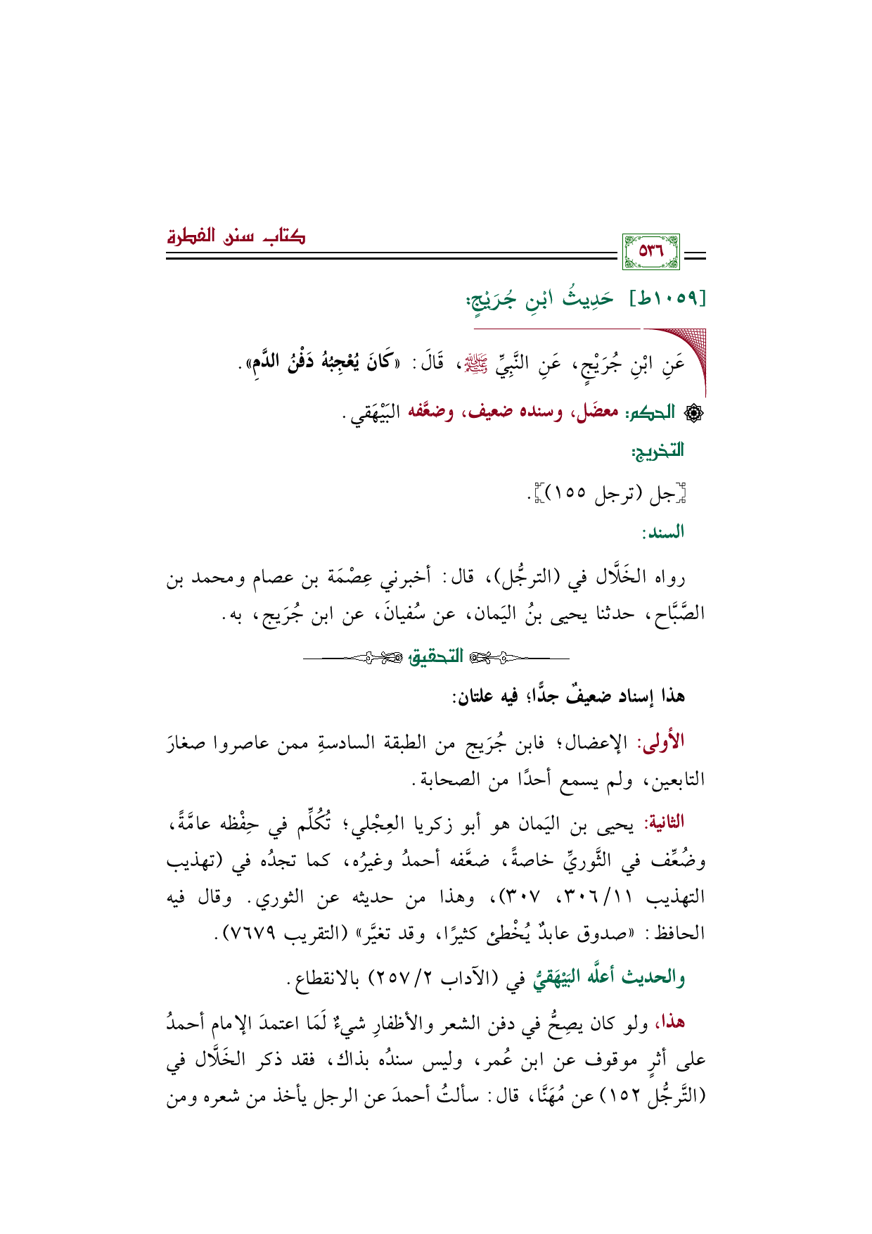 رواه الخَلَّال في (الترجُّل)، قال: أخبرني عِصْمَة بن عصام ومحمد بن الصَّبَّاح، حدثنا يحيى بنُ اليَمان، عن سُفيانَ، عن ابن جُرَيج، به.