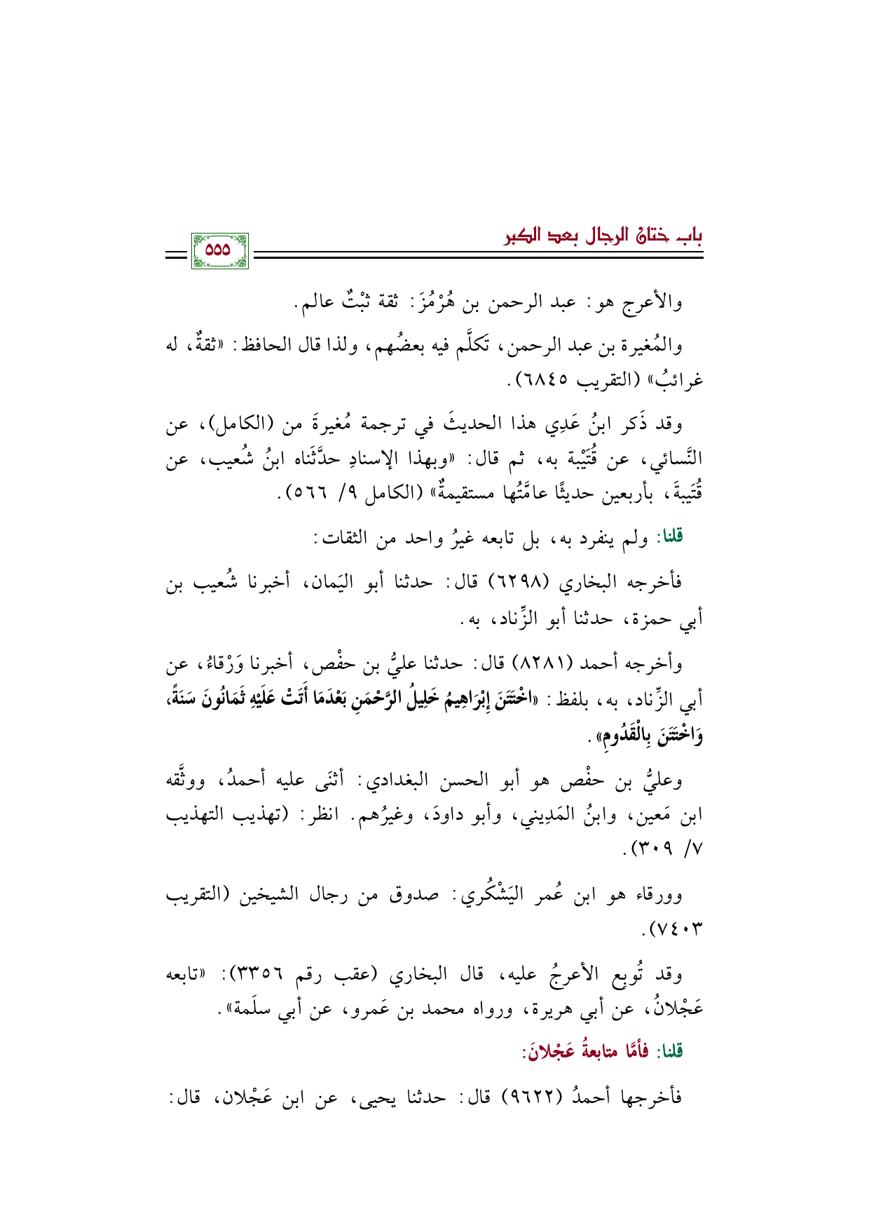 قلنا: فأمَّا متابعةُ عَجْلانَ: